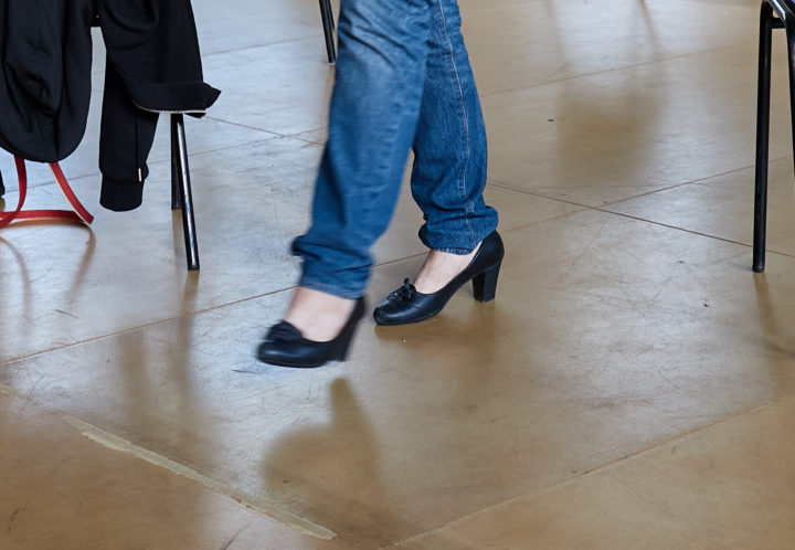 Utilizando como “guión” una pista de audio que se reproduce en un pequeño altavoz auto-amplificado que llevo en mi mano voy deambulando entre el público en silencio escuchándose solamente mis pasos. Cuando el audio comienza me paro lo mas cerca posible de una de las personas sentadas invadiendo su espacio personal, cuando termina el audio vuelvo a deambular en silencio rodeando a cada espectador varias veces.