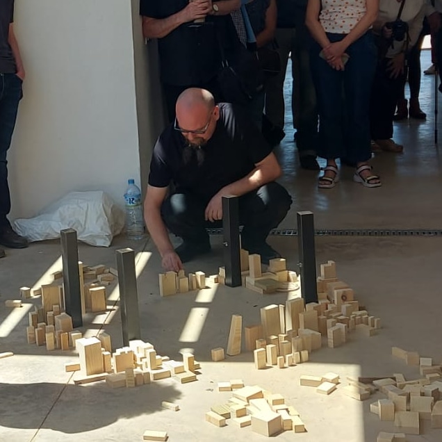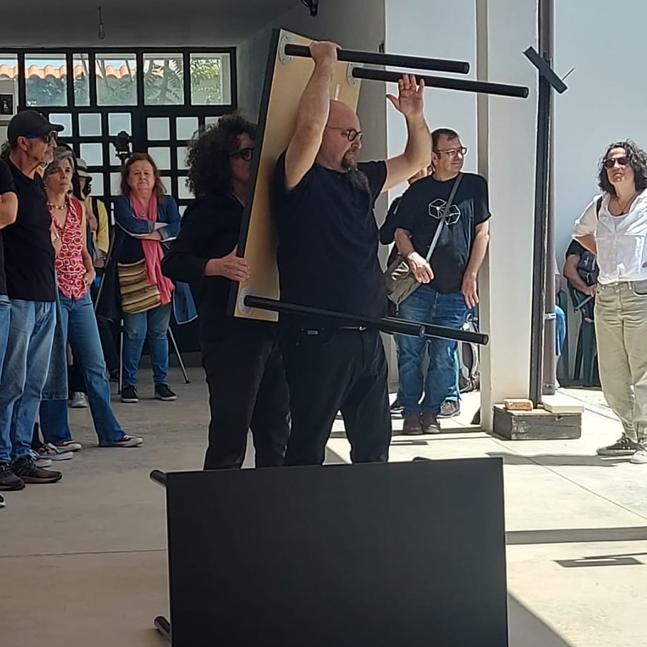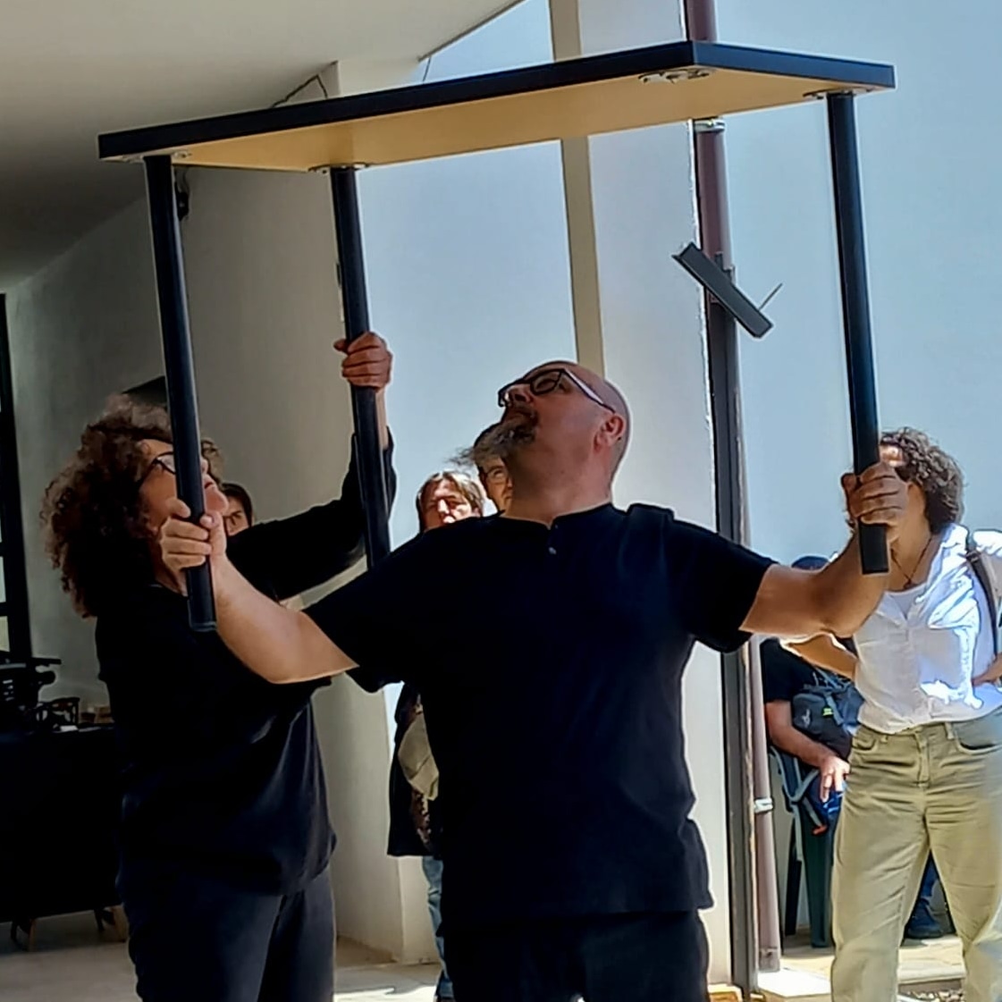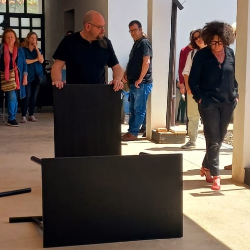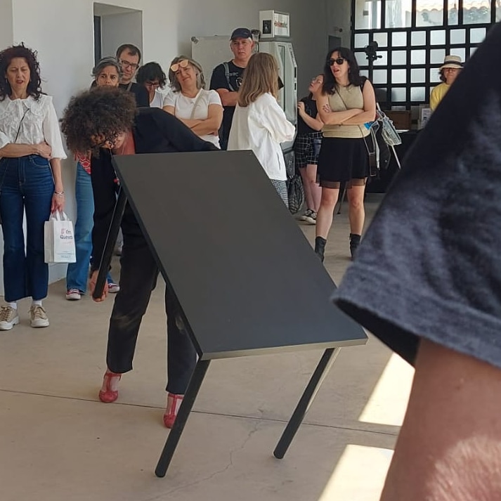 Para nosotros es muy importante el espacio tanto geométrico como simbólico así como la audiencia y el entorno en el que sucede nuestro trabajo, por lo que esta performance es una propuesta site specific para el Centro de Arte y Holografía Dados Negros, para el día de la inauguración de la exposición “Cromático” y para un momento concreto; el momento justo anterior al catering de bienvenida. Una propuesta en la que un final se mezcla con un principio tal y como nos gusta a nosotros trabajar.