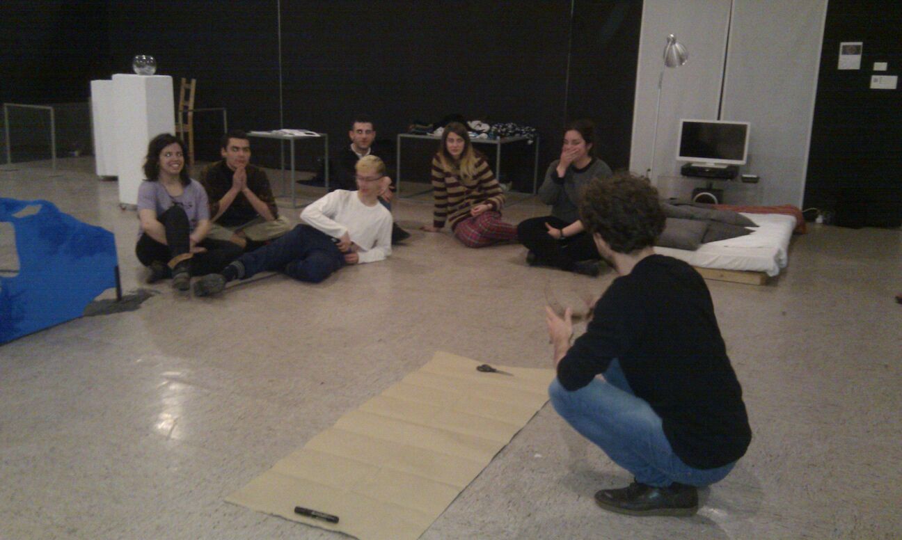 Esta actividad propuso desde el año 2012 al 2016 un acercamiento del Arte de Acción EN Y DESDE la Facultad de Bellas Artes de la Universidad Complutense de Madrid EN la Facultad mediante la organización de un seminario cuatrimestral de Arte de Acción con el propósito de formar DESDE la Facultad un grupo que cada mes de noviembre participó en el programa “FRÁGIL” de Acción!MAD, un programa dedicado a estudiantes de Facultades de Bellas Artes.