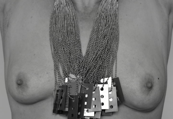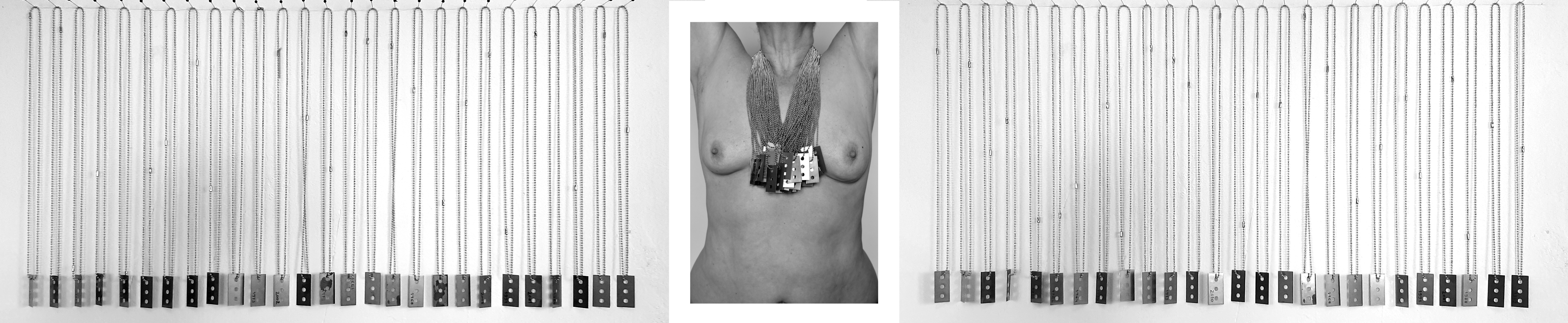 Medidas: 43,4×61 cm la fotografía y 80 x 30 cm aproximadamente las cadenas con sus correspondientes cuchillas