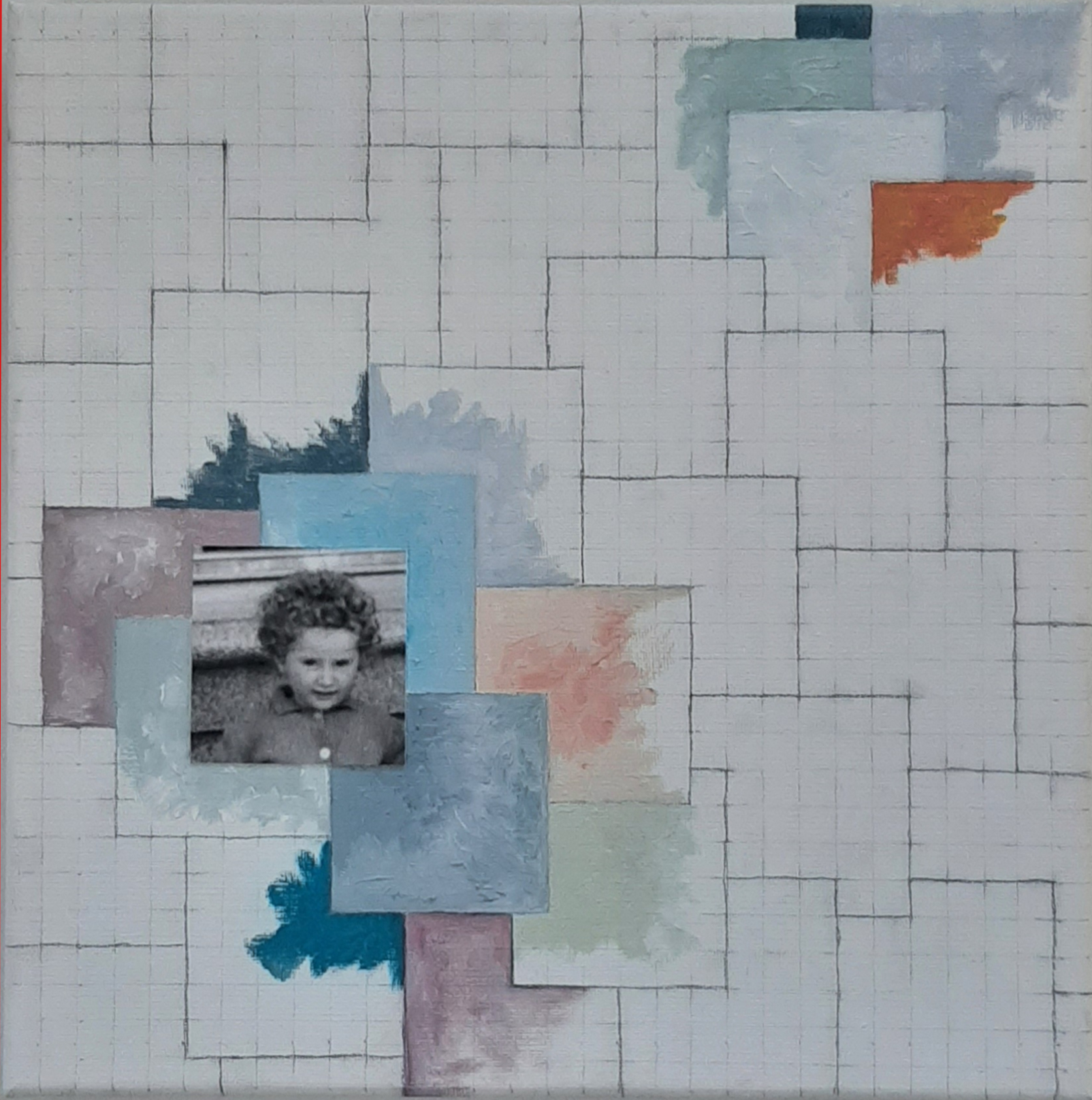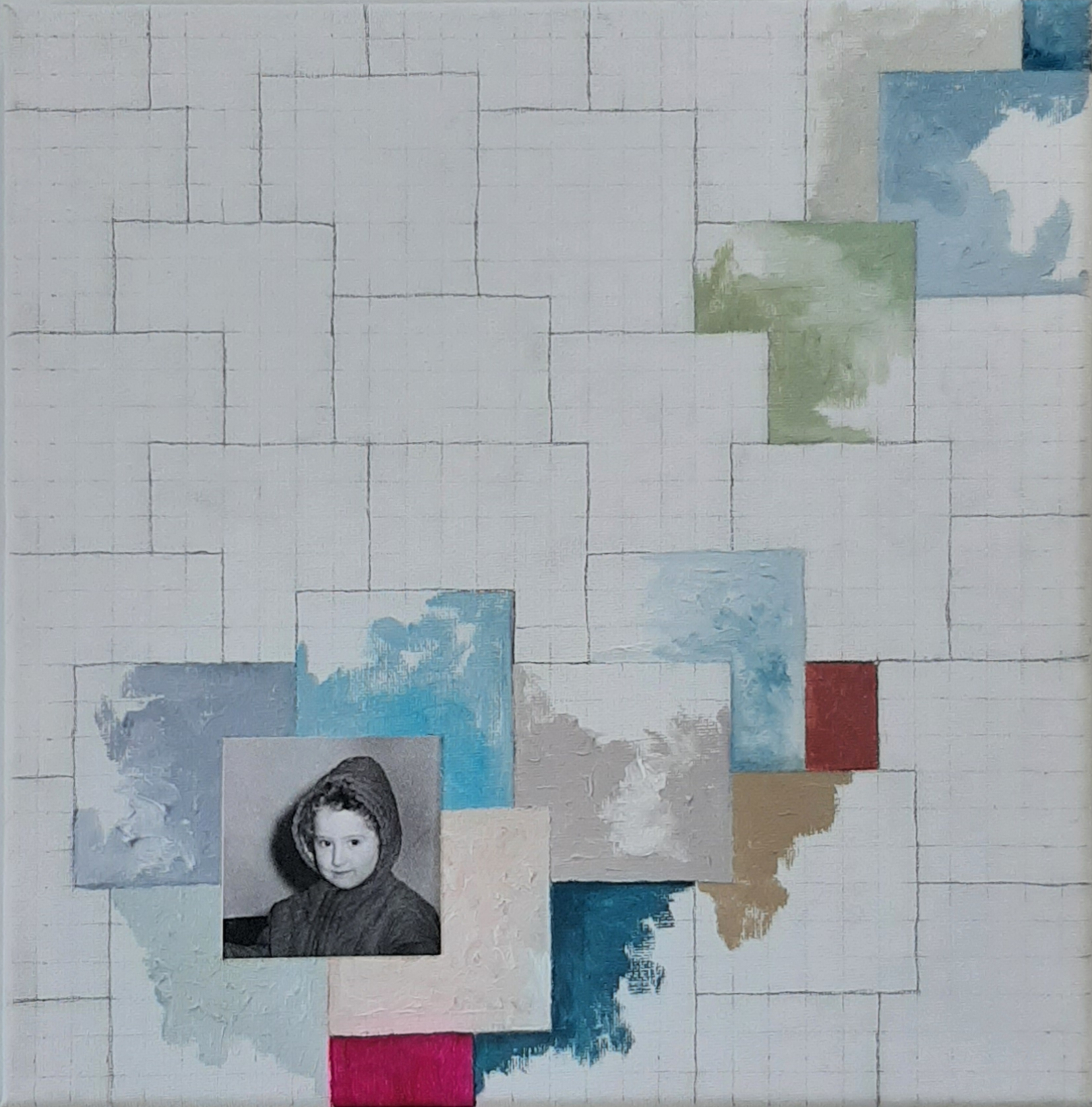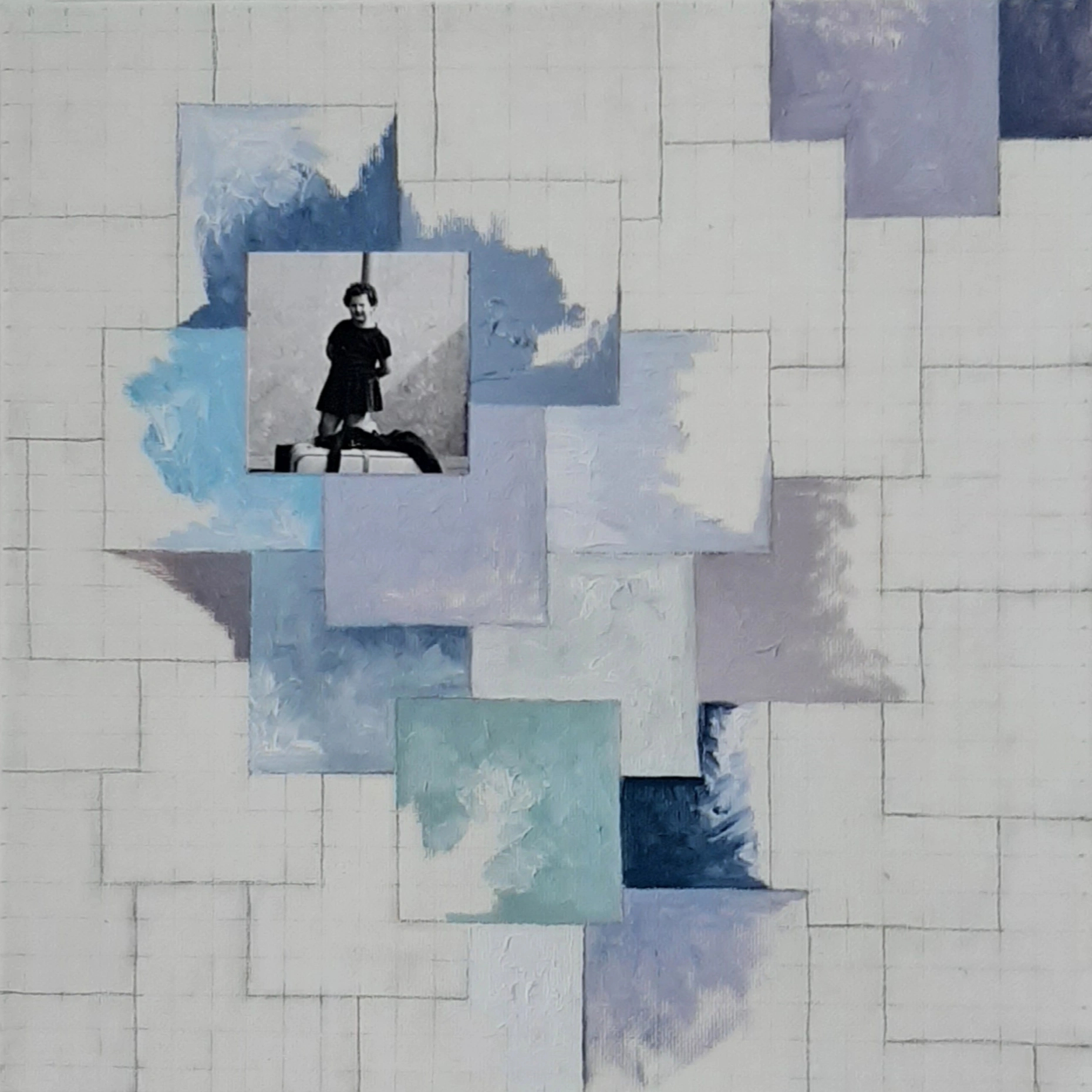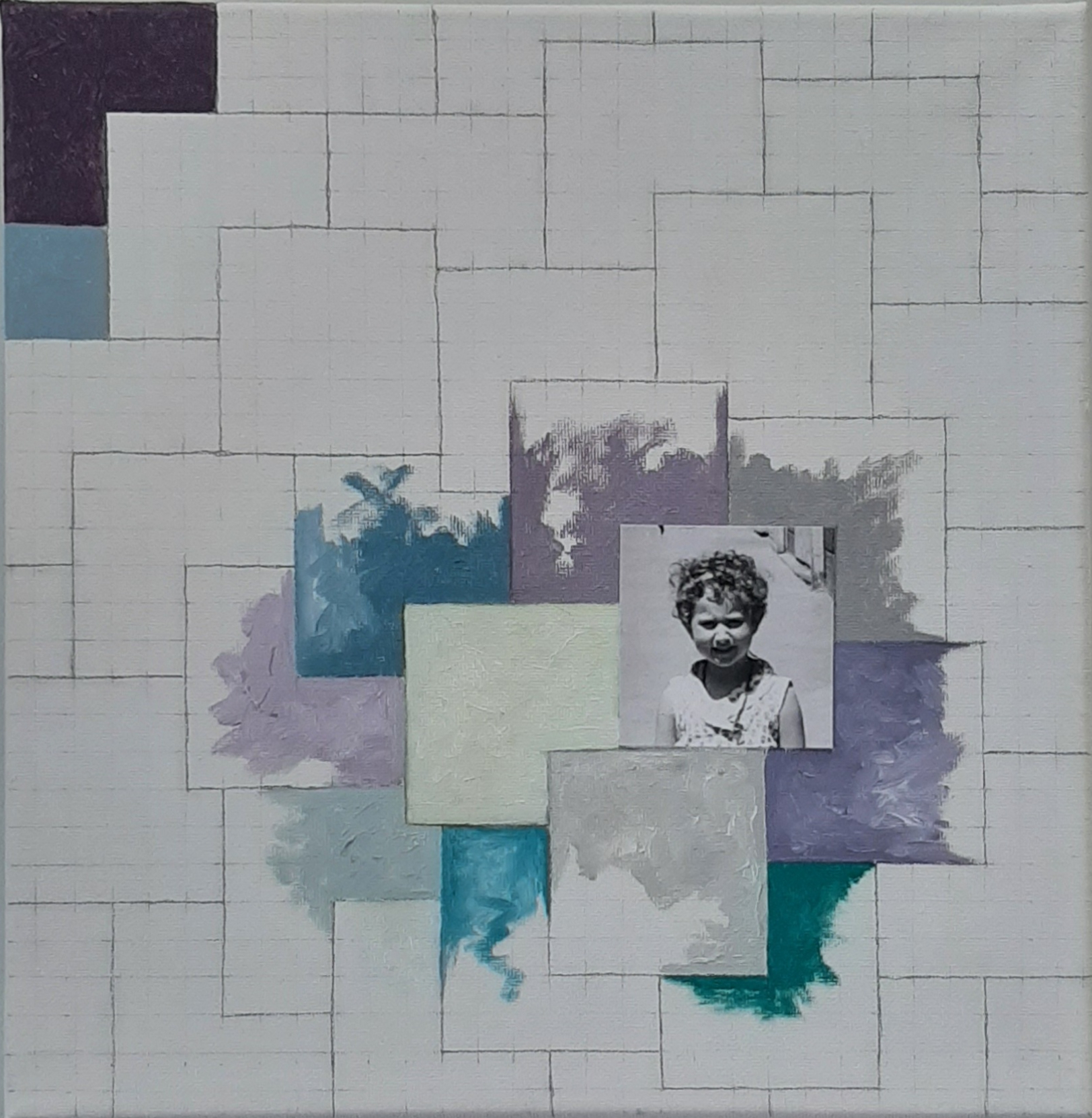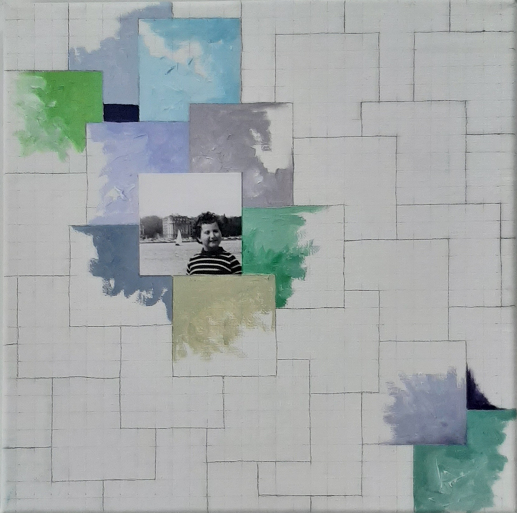 La pieza está compuesta por once lienzos de 30 x 30 cm que componen una única pieza de 150 x 90 cm aproximadamente.  Cada lienzo combina dibujo, pintura al oleo y fotografía, puesto que he incluido en cada uno de ellos una fotografía mía correspondiente al año que “describe”, abarcando un periodo de tiempo entre 1961 y 1971.