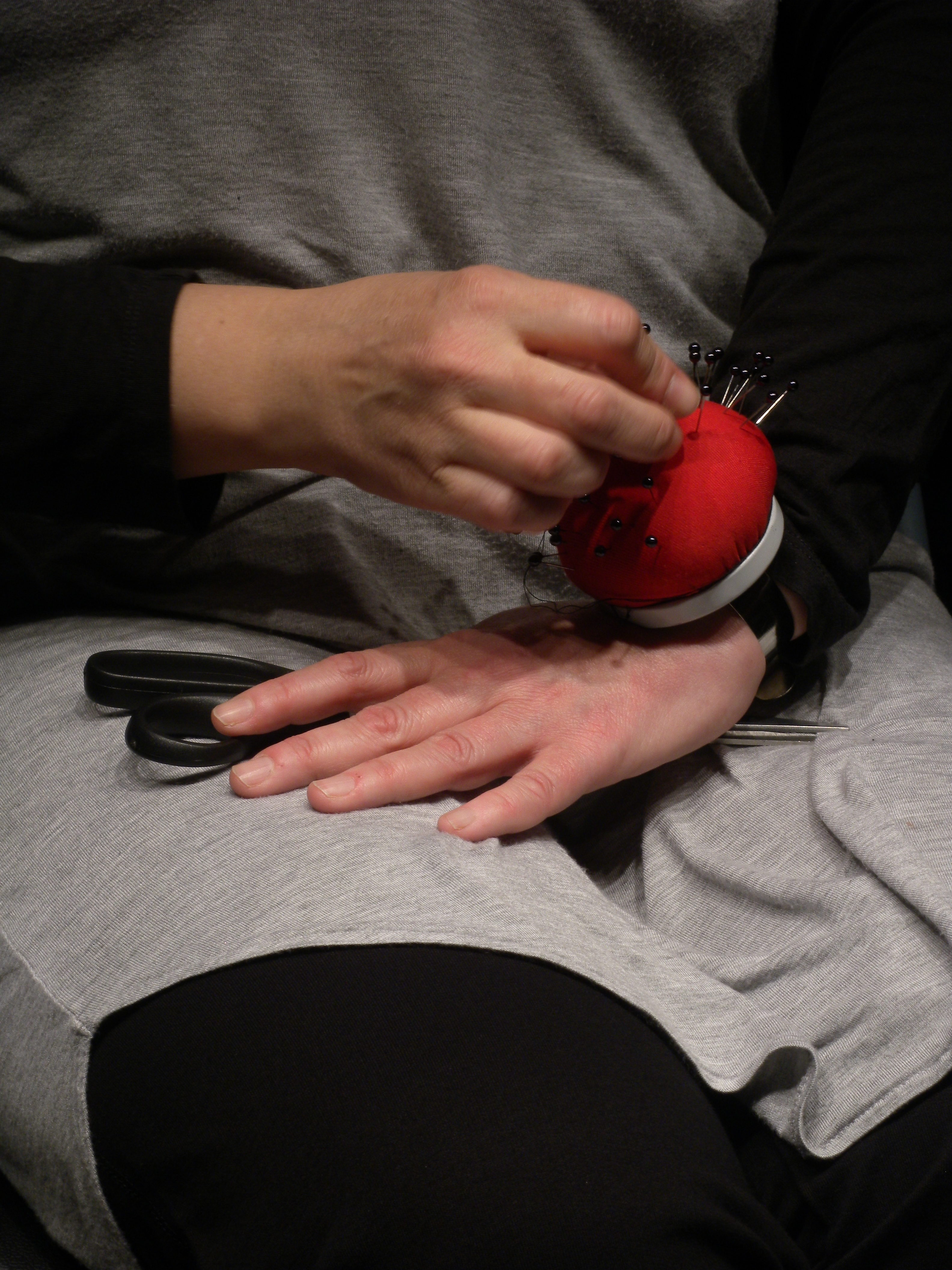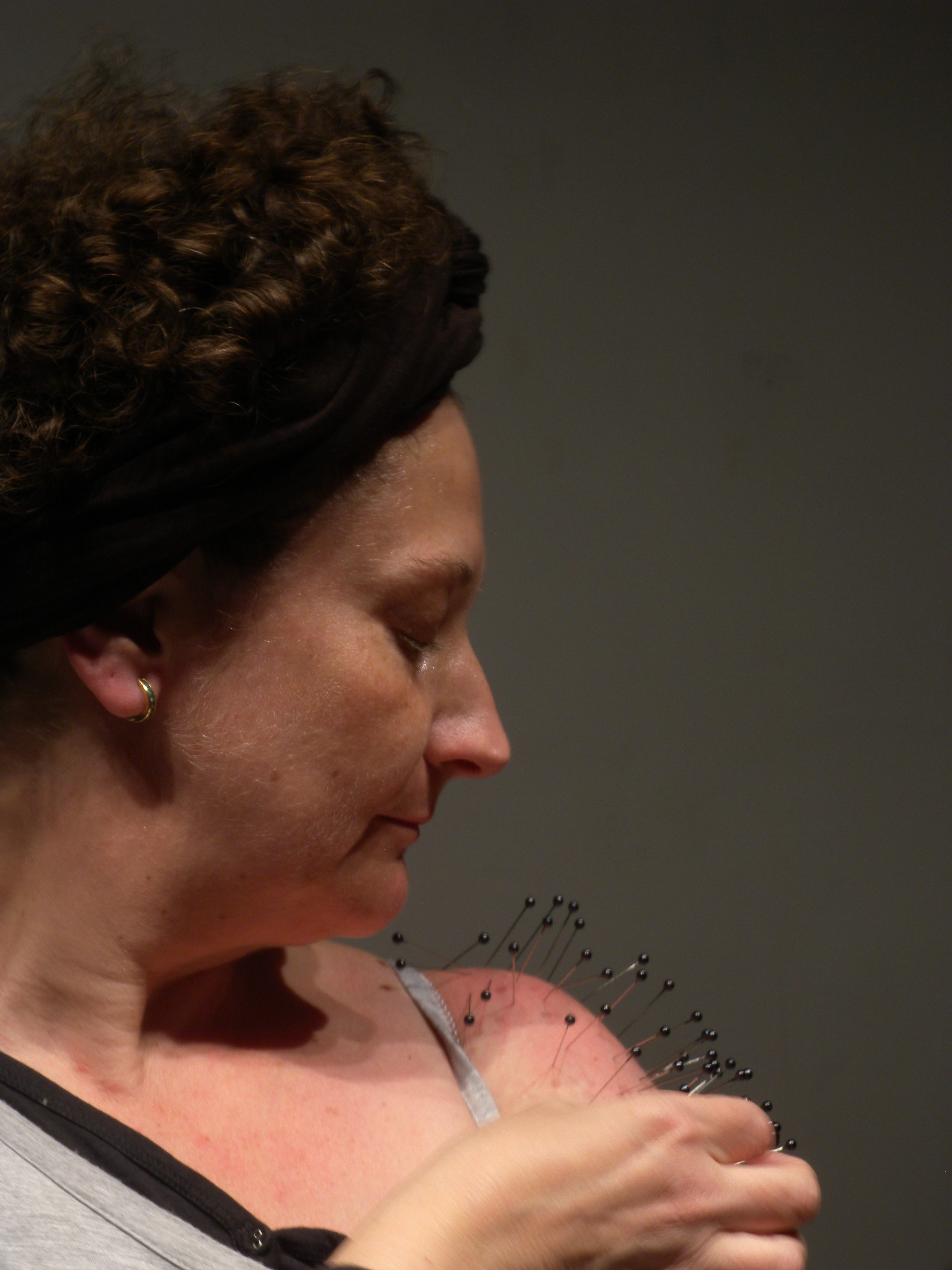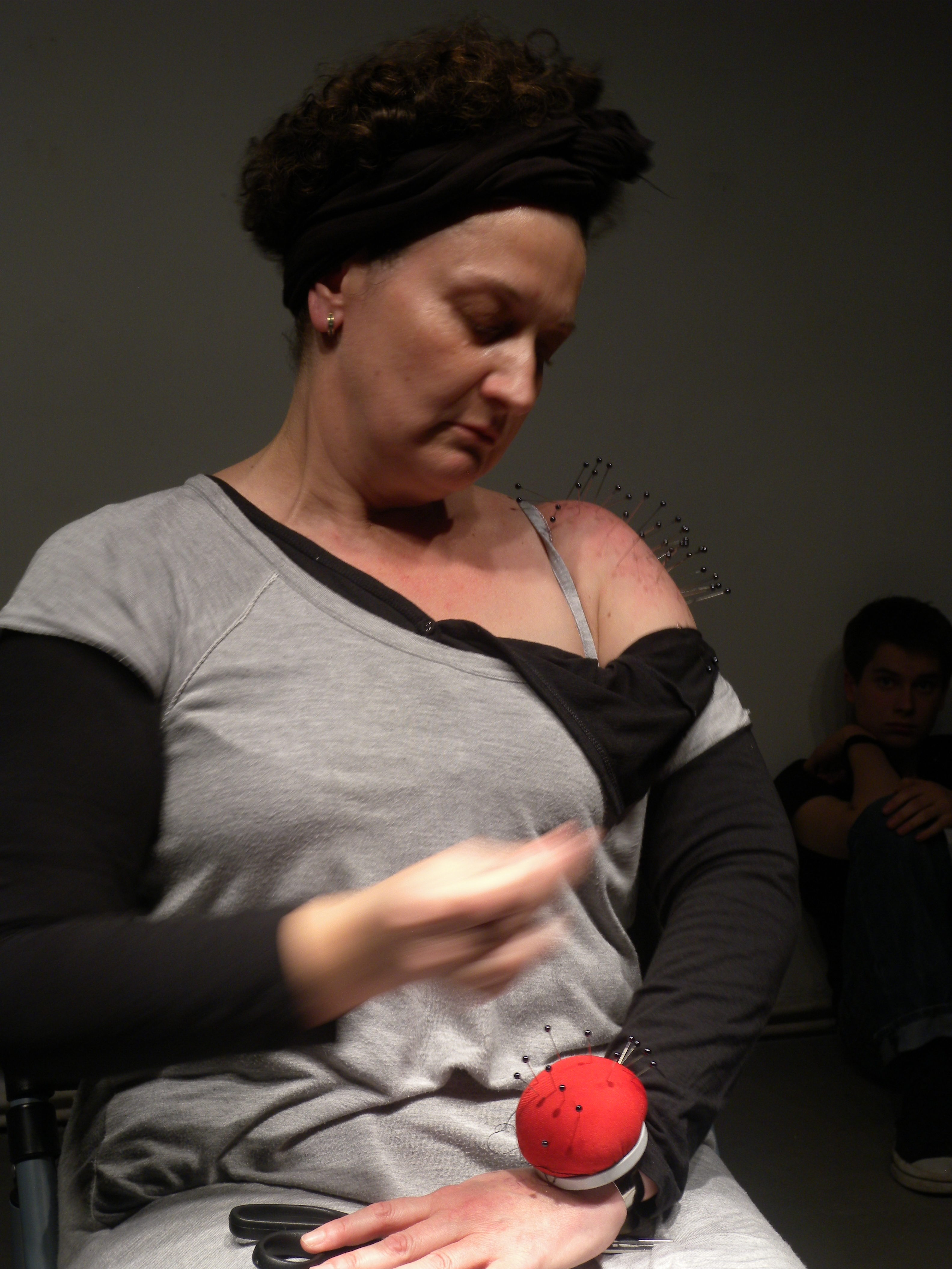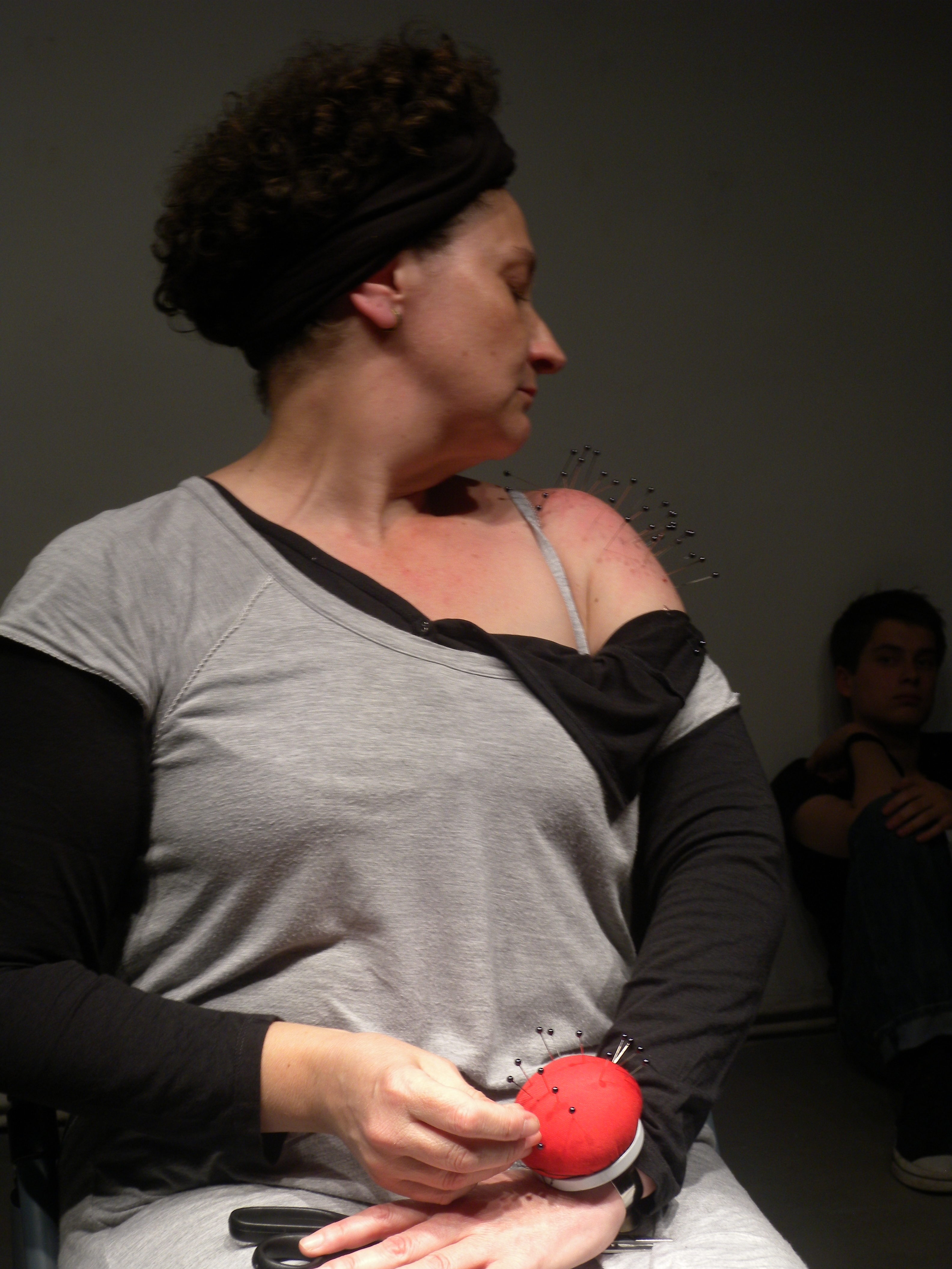 Coger uno a uno esos alfileres y clavarlos sobre mi hombro desnudo, después volver a colocarlos en el alfiletero.