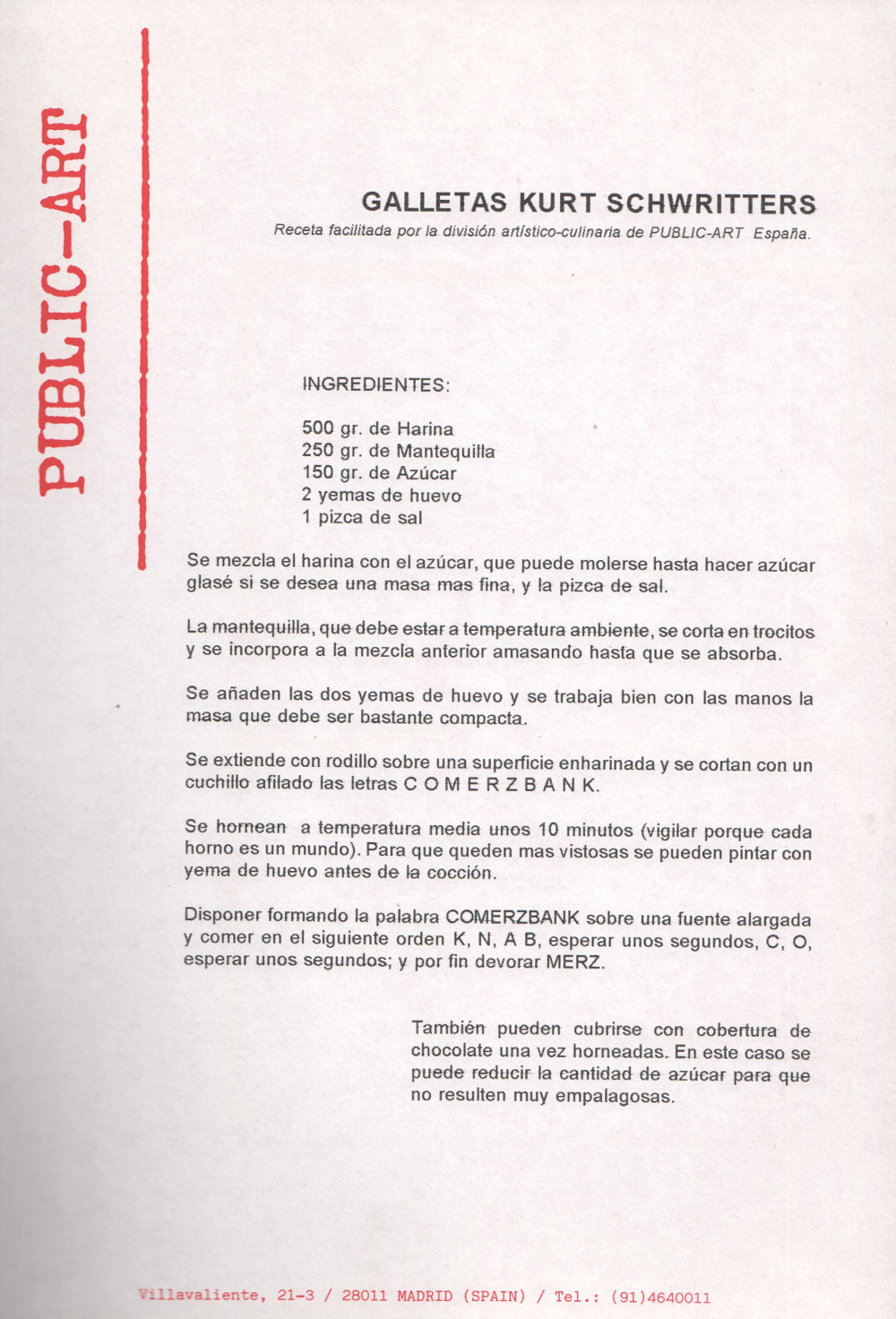 Receta de las galletas en papel Public-Art tamaño 21 x 29,7 cm. Lateral perforado para encuadernación en espiral.