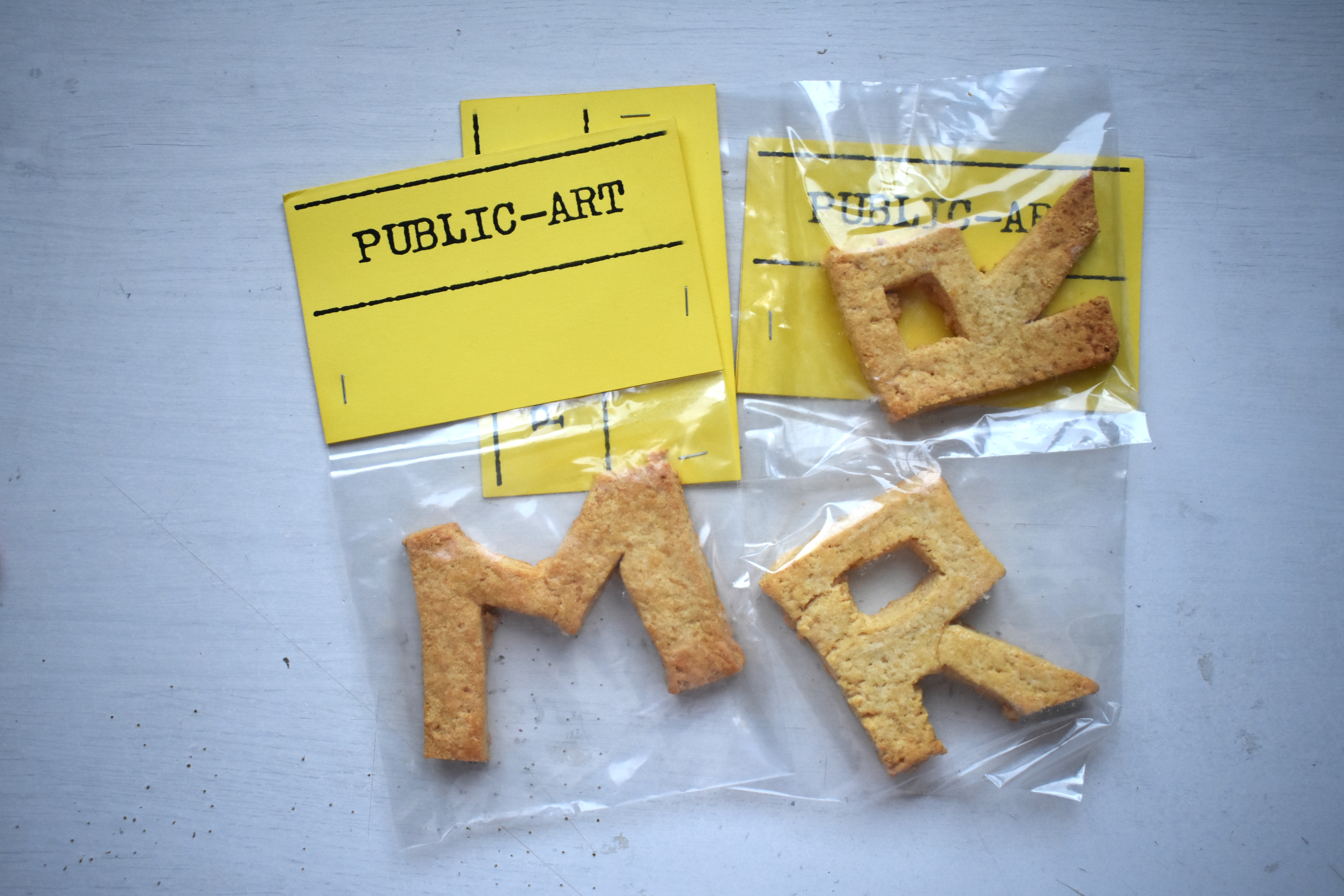 En esta pieza las letras de la palabra se amasaron y hornearon para formar galletas.
