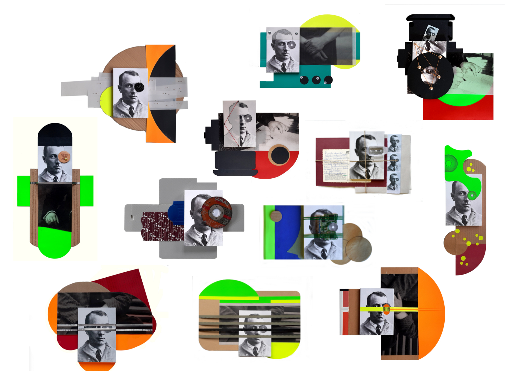 Una de los temas que son recurrentes en mi obra y en mis acciones es el “Acto de Mirar”, “La Mirada” que yo proyecto y la mirada que recibo. En esta serie de collages exploro ese concepto desde ambos umbrales utilizando como vehículo la fotografía de Jean Arp con Monóculo – Ombligo, una fotografía anónima del año 1928.
