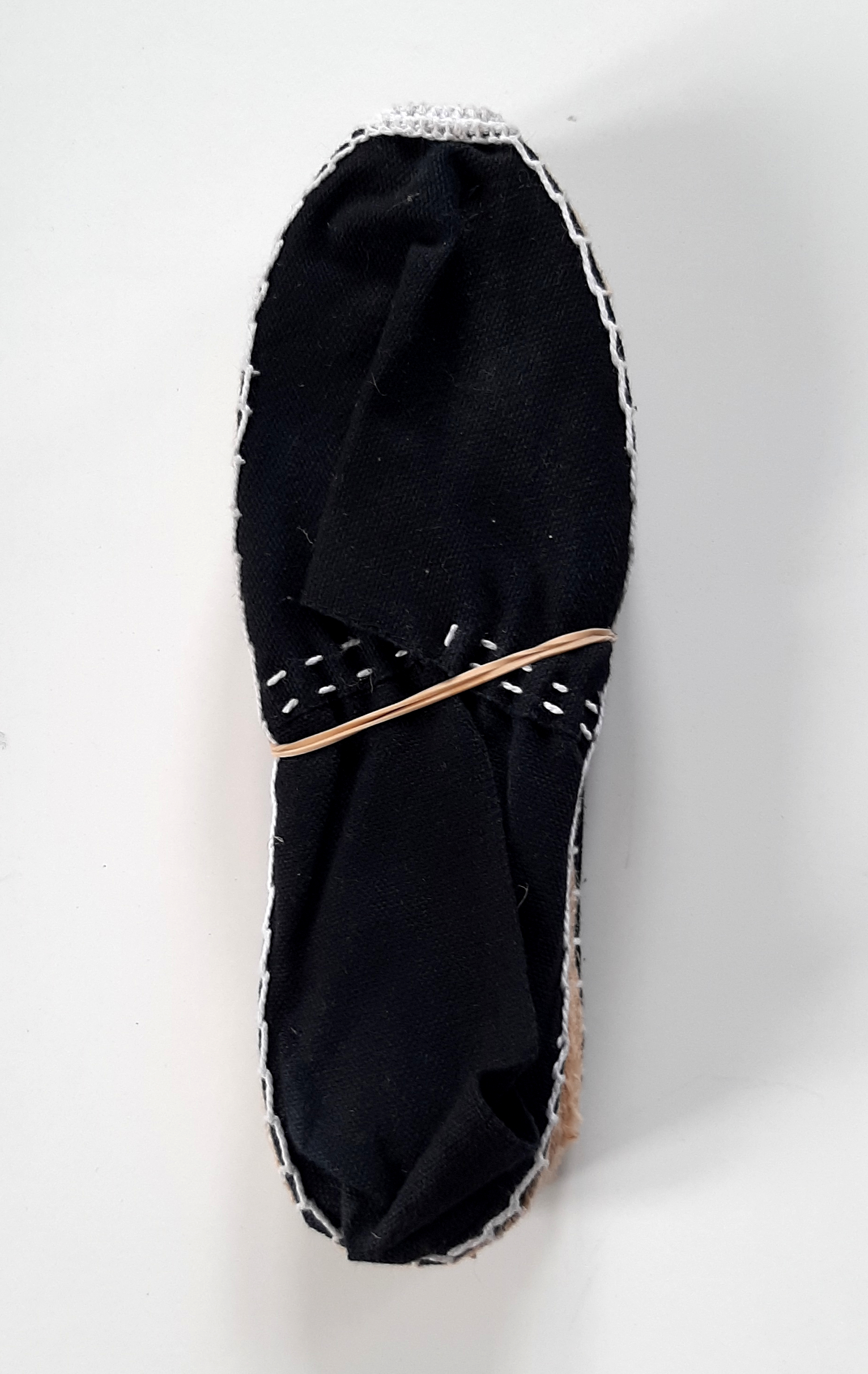 El tablero se dispone sobre el suelo y encima están colocadas las alpargatas.