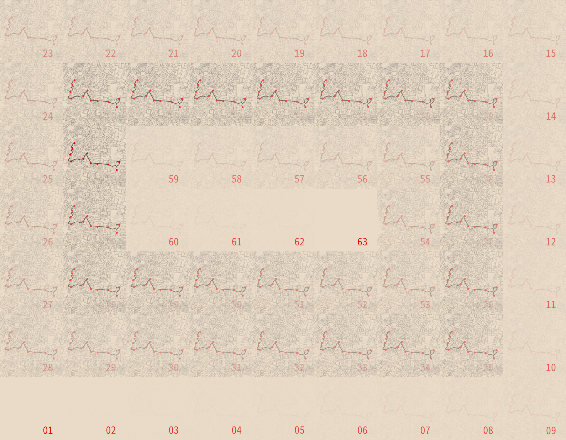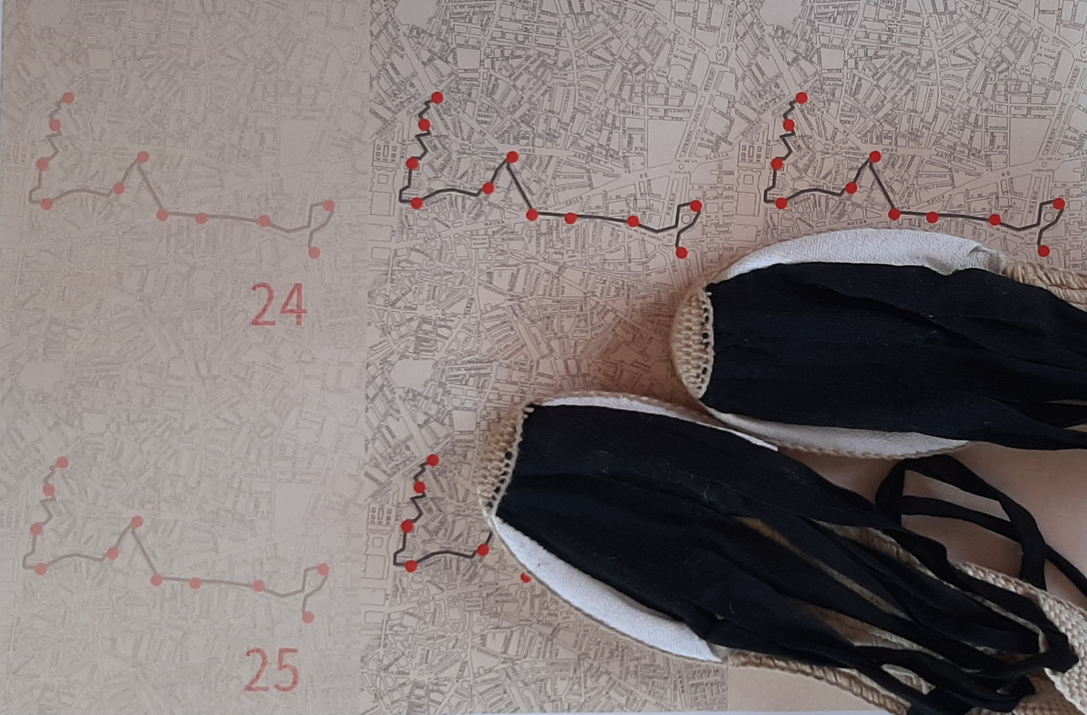 Estos tableros refieren a una obra previa, en este caso a “Traslaciones”, una de las tres piezas en las que he utilizado un par de alpargatas para viajar al pasado.