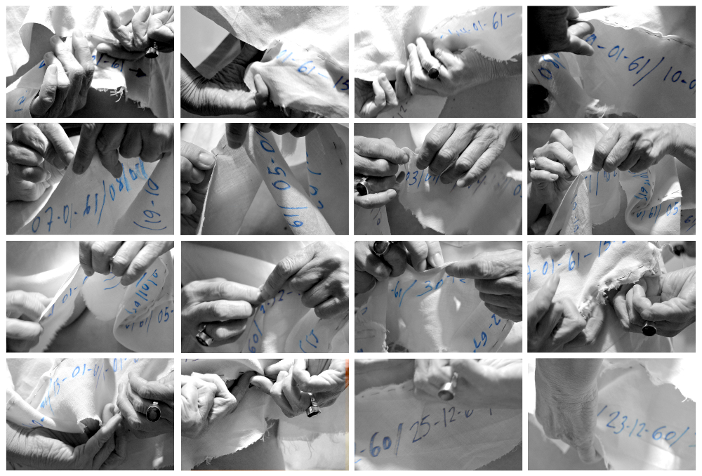Como en muchas de mis piezas otra vez aparece un cuerpo fragmentado y en cierta forma anónimo, aunque son mis manos, y repetidas 242 veces. Me interesa la idea del gesto cotidiano repetido y su acumulación así como los diferentes sentidos que ésta repetición otorga.