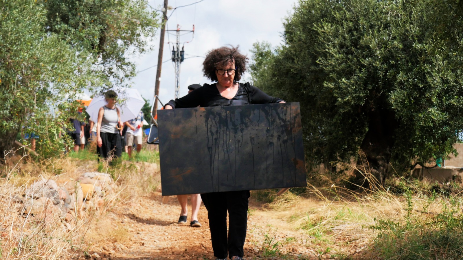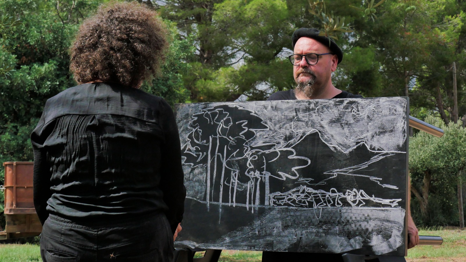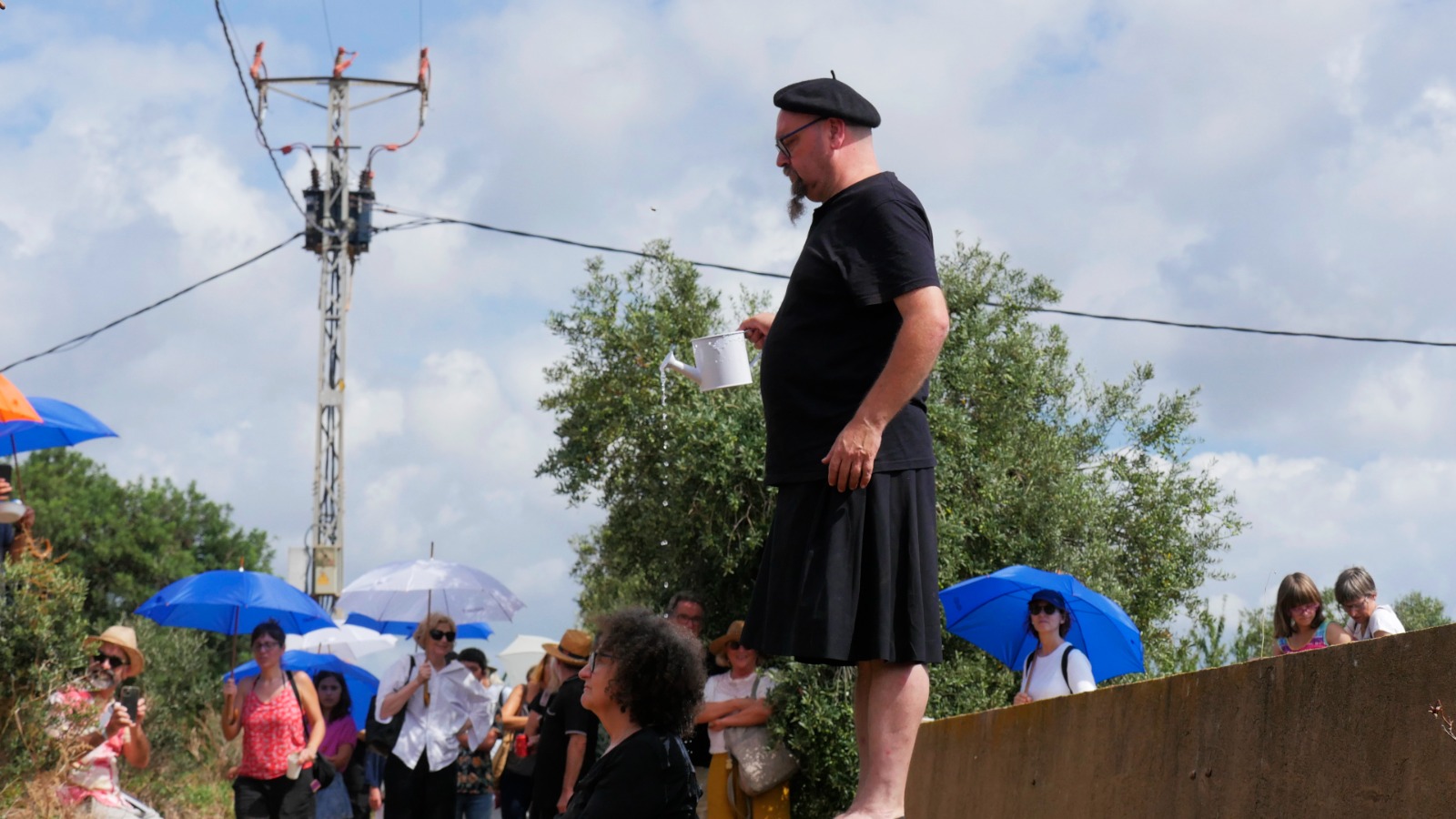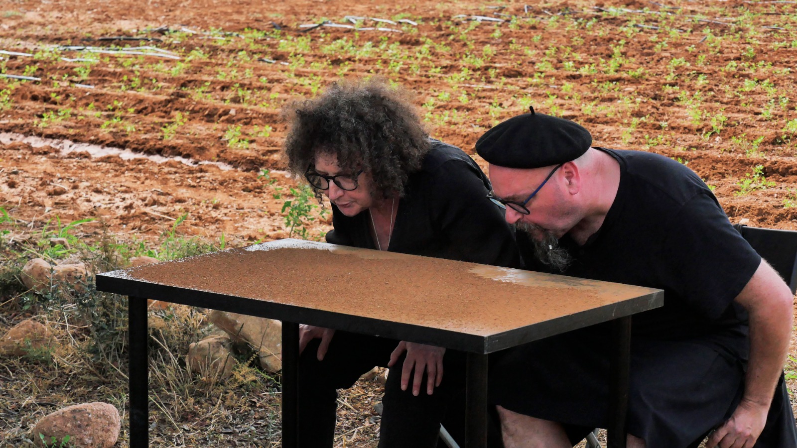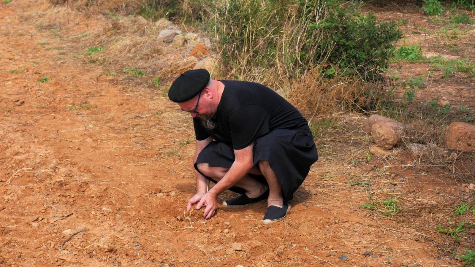 Provistos de una mesa y dos sillas plegables negras nuestro particular “viaje interior” recorre los espacios en los que se desarrolla el Festival Partides 2025 señalando rincones inesperados, detalles de ruinas, árboles y naturaleza, piedras y descampados en un recorrido previamente trazado en el que nos acompañaron todos los asistentes que así lo deseen.