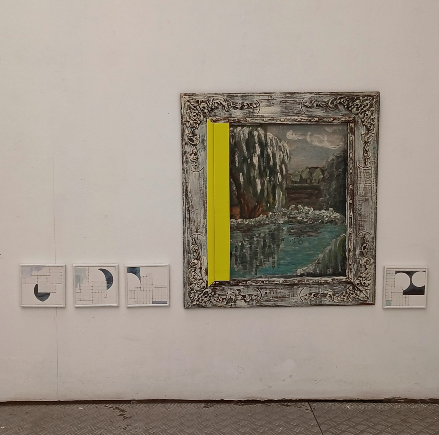 Y es ahí, en ese “dique seco” en el que hemos coincidido Lucía y yo, como dos viejas goletas en espera del próximo calafateado, de donde surge esta exposición. Porque ambas tenemos la misma necesidad de llenar esos momentos de “descanso” entre proyecto y proyecto con otro tipo de hacer, un hacer que brota desde un pensamiento de la forma que estructuramos en base a las relaciones entre diferentes elementos visuales y que yo siento como una bendita desconexión de un tipo de pensamiento en favor de otro que acabará por retroalimentar el primero.