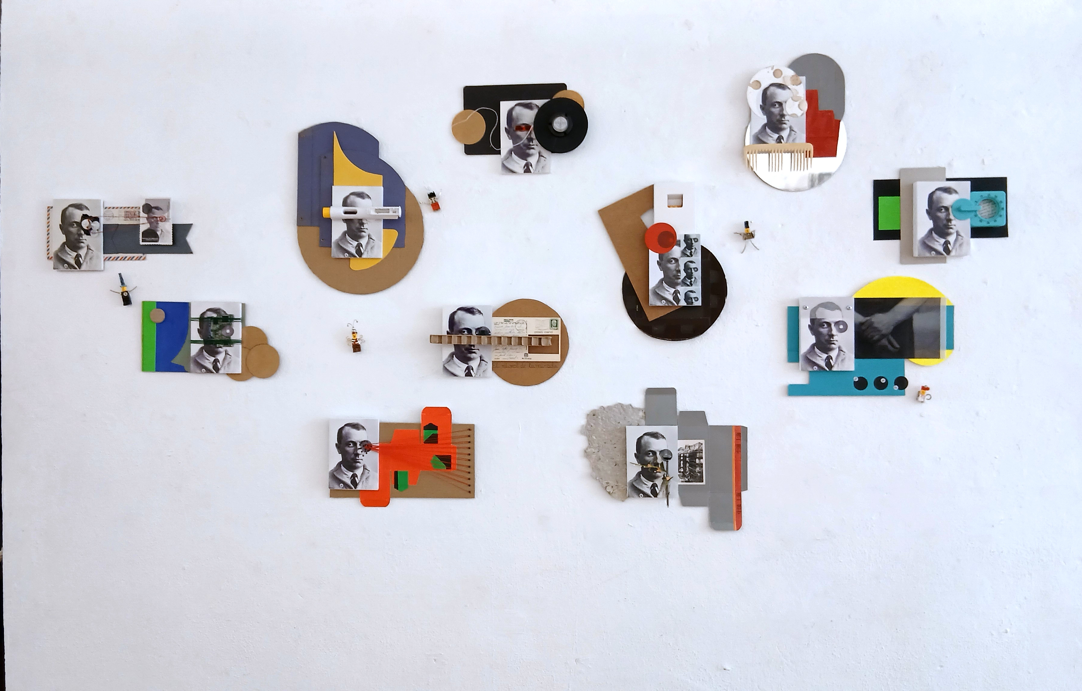 En mi caso trabajo directamente con los objetos, las formas y los colores y parto la mayoría de las veces de un determinado tipo de objeto o imagen que exploro y exploto hasta la saciedad como puede ser la fotografía de Jean Arp con monóculo Dada con la cual llevo trabajando diez años de forma intermitente.