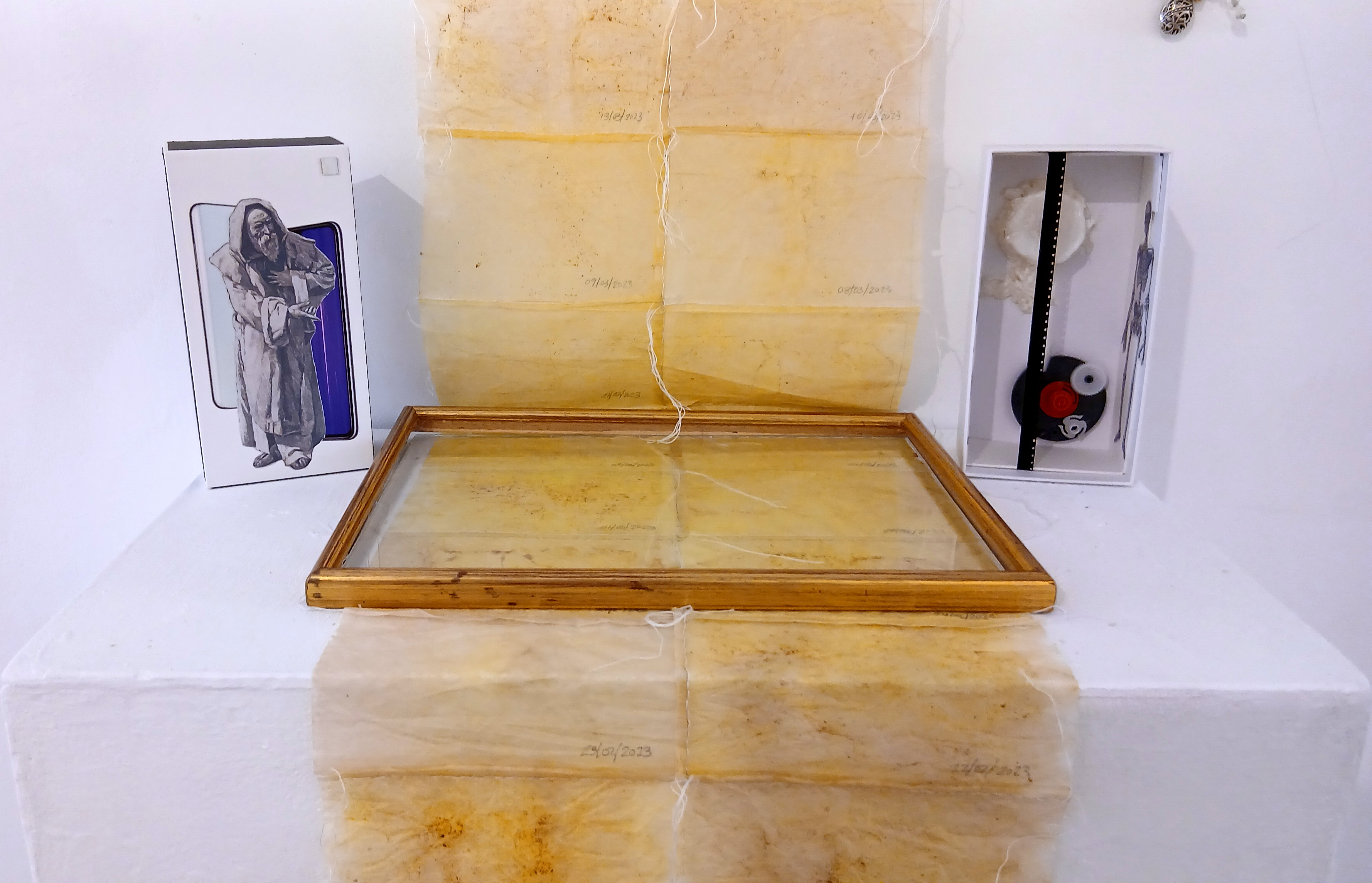 Y aquí está nuestra conexión; en mi caso también utilizo restos desechados de otros trabajos y proyectos que guardo en el taller mezclados con elementos que llegan a mis manos por azar, no tanto en la vía pública, sino en los procesos de la vida cotidiana: embalajes, objetos estropeados, infinitos papeles, cajas y envoltorios, que igualmente muchos llamarian basura.