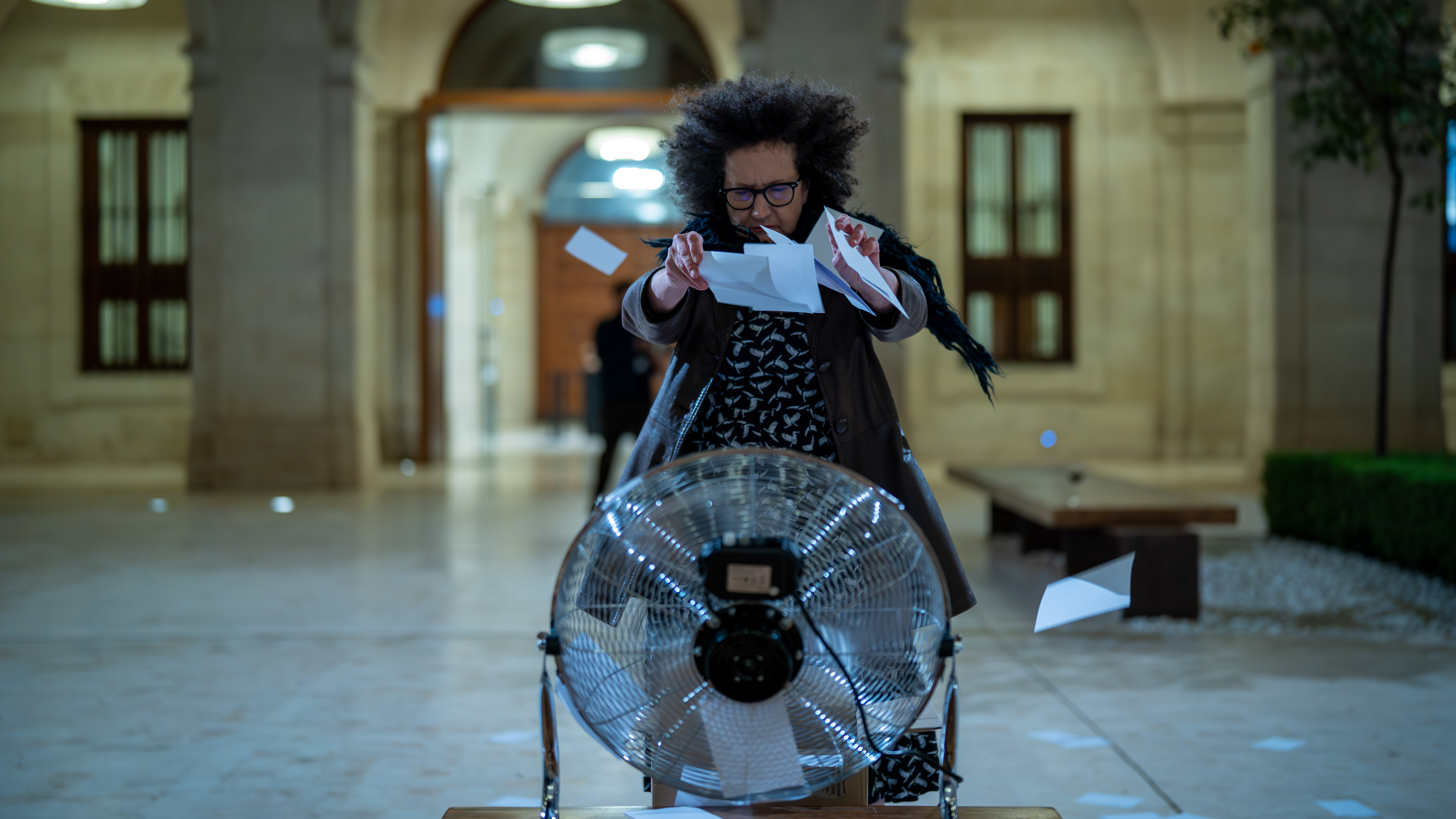 Nieves Correa propone una acción corporal directa y descarnada, sin elementos que desvíen la atención del cuerpo. La artista se expresa consciente de las múltiples realidades en las que habitamos, planteando: “¿Cuál es la urgencia del pasado, la urgencia de los muertos?”. La urgencia del pasado parece interpelar la necesidad de revisar algo importante que no merece desaparecer. La urgencia de los muertos, por su parte, sugiere una reflexión sobre aspectos concretos de la memoria individual o colectiva. Lo que está claro es que la presencia de la artista, en ese ejercicio performativo de poner su cuerpo ante una audiencia, evoca un acto humano y necesario: recordar. No olvidar y estar presentes.