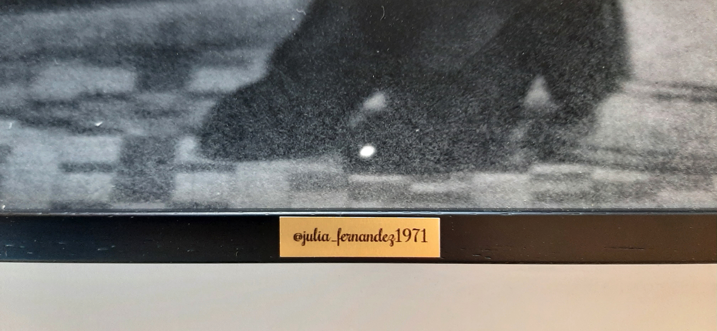 Una placa de aluminio a modo de título de su cuenta de instagram @julia_Fernandez1971