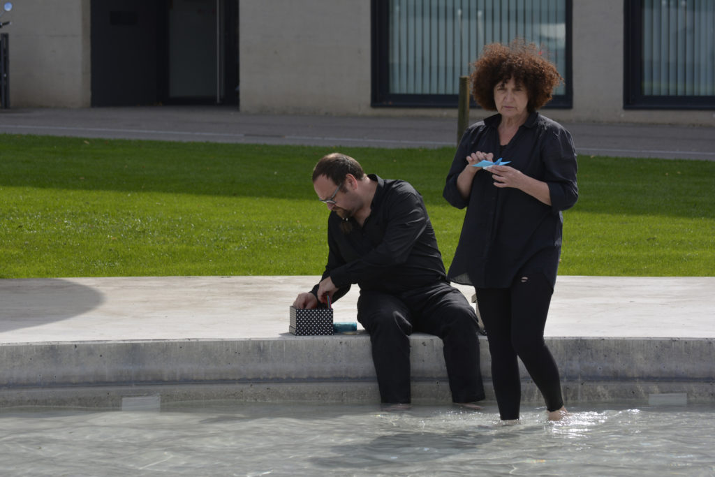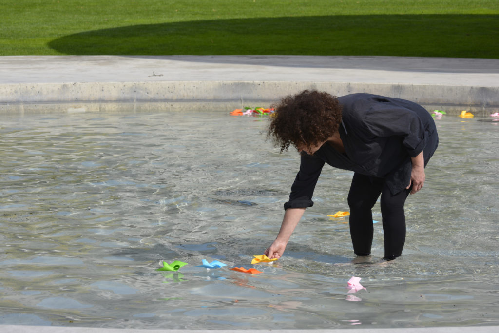 Intentamos llenar de nenúfares de papel el estanque del parque del barrio Neu-Oerlikon de Zurich.