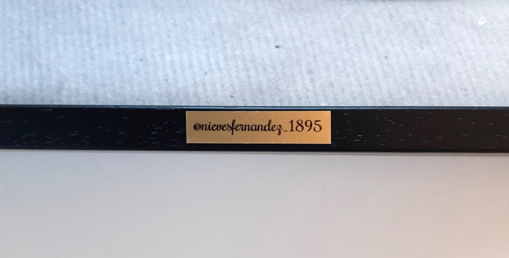 Una placa de aluminio a modo de título de su cuenta de Instagram @nievesfernandez_1895