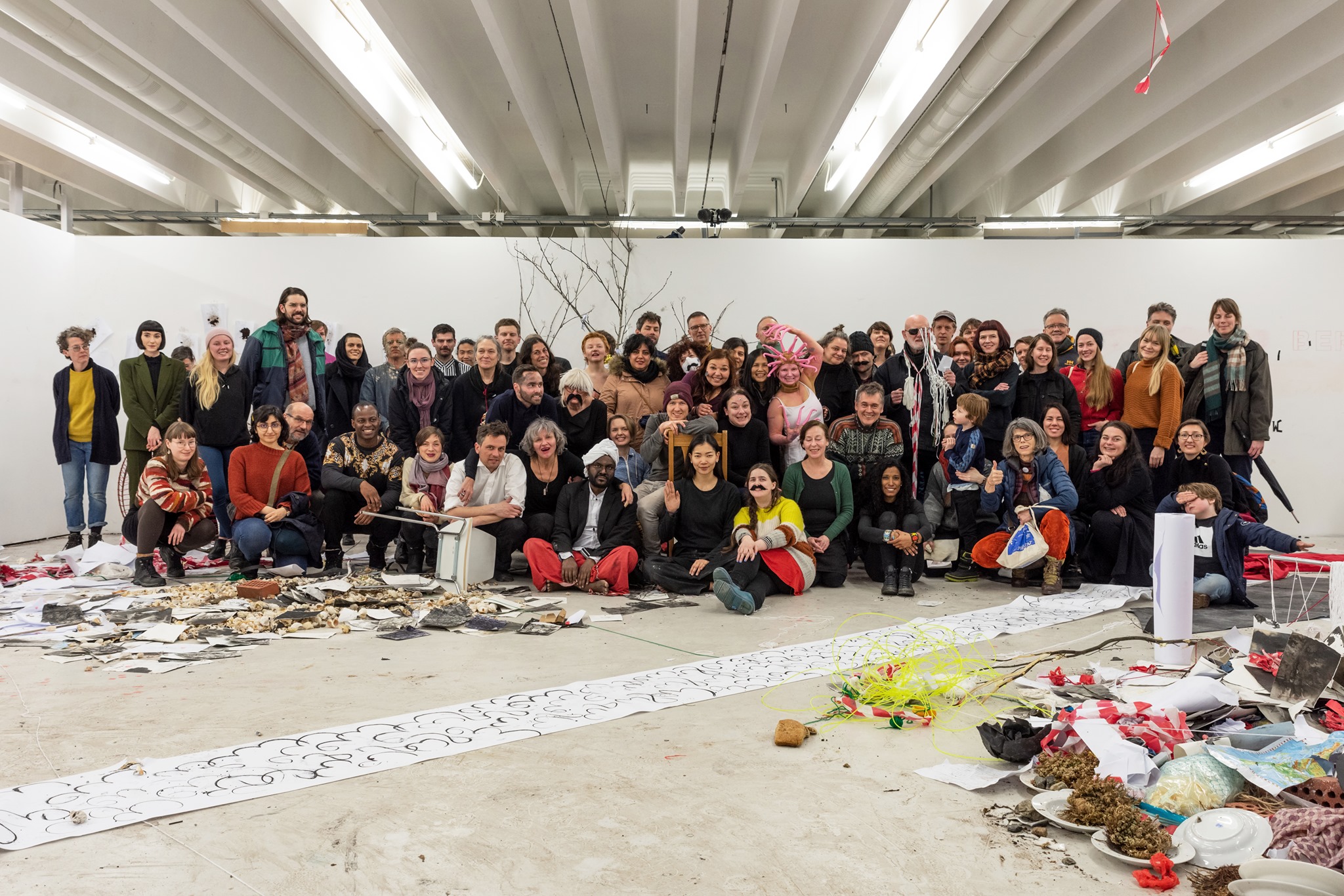 Los artistas participantes entraron en el espacio de la performace uno a uno cada hora y permanecieron en el espacio durante un periodo de 24 horas. Los artistas trabajaron juntos finalizando la performance colectivamente. El espacio de la performance fue ocupado gradualmente por los artistas y sus materiales y según el tiempo iba pasando la acumulación de materiales se fue haciendo cada vez mas presente.