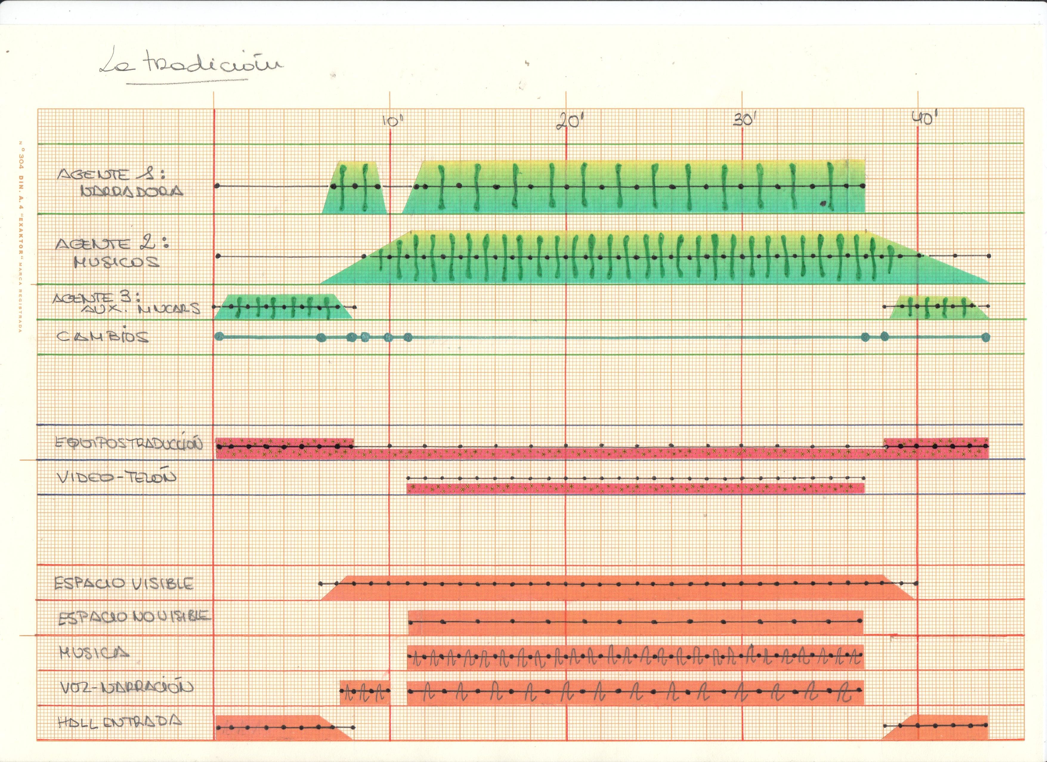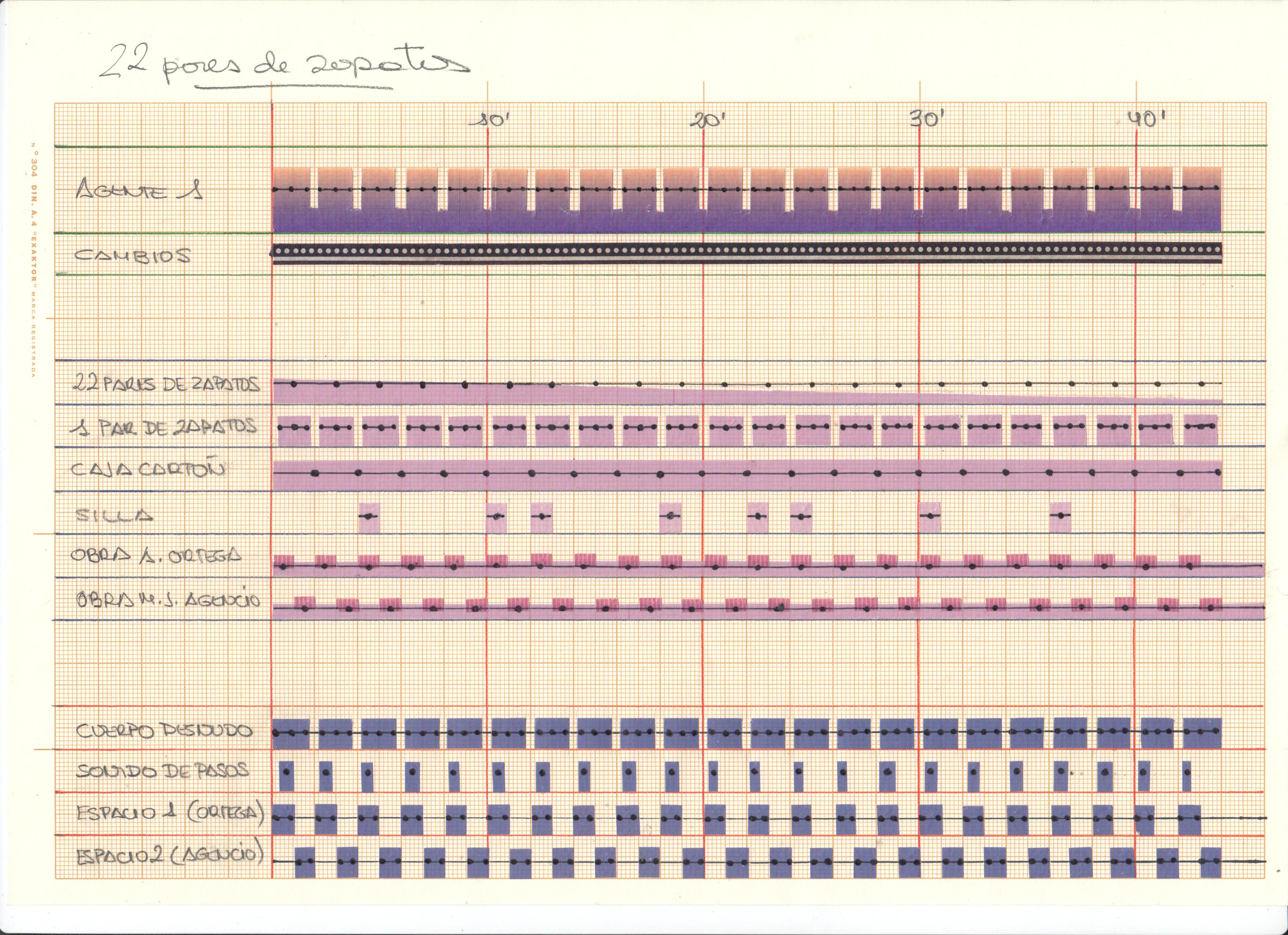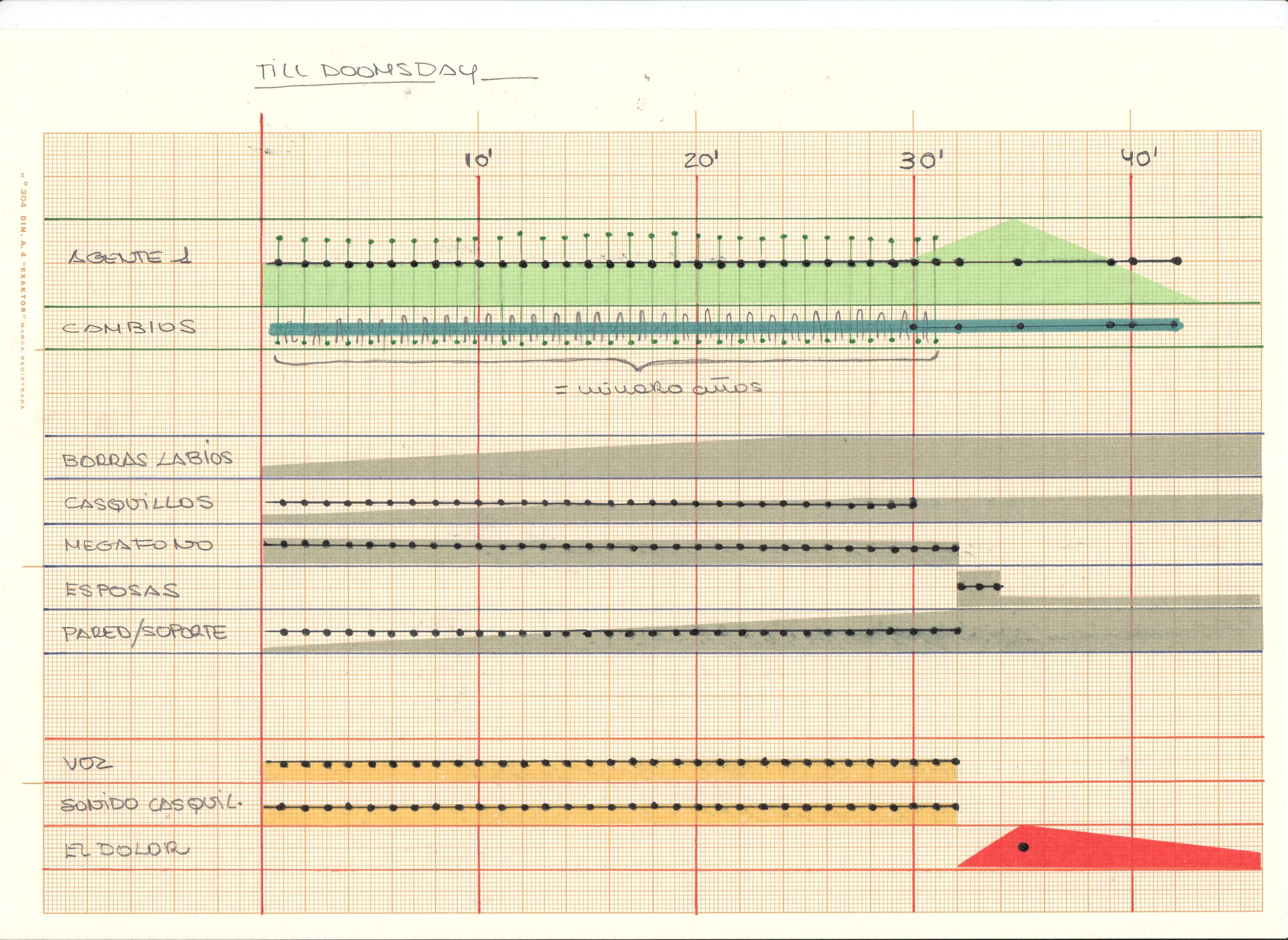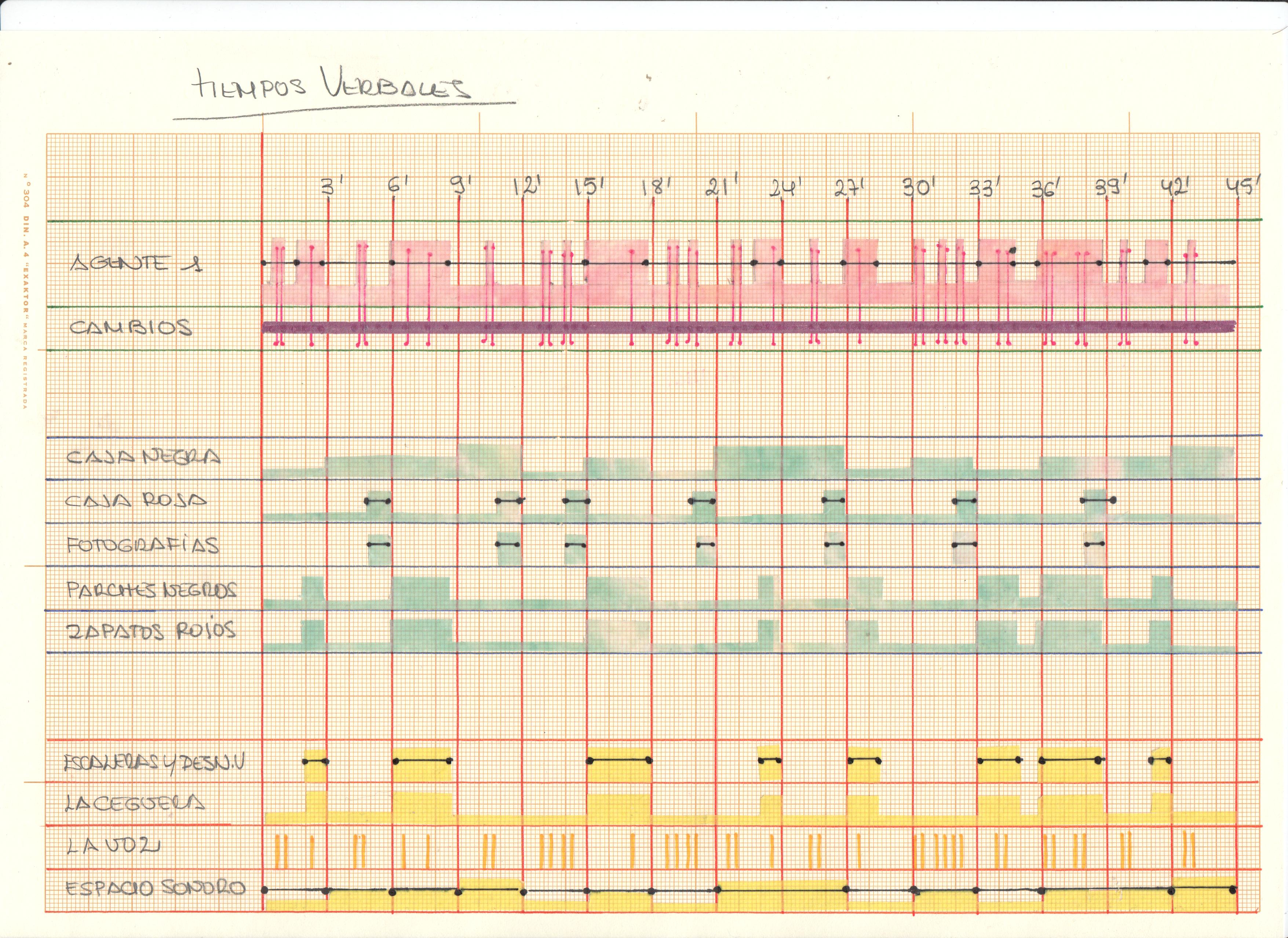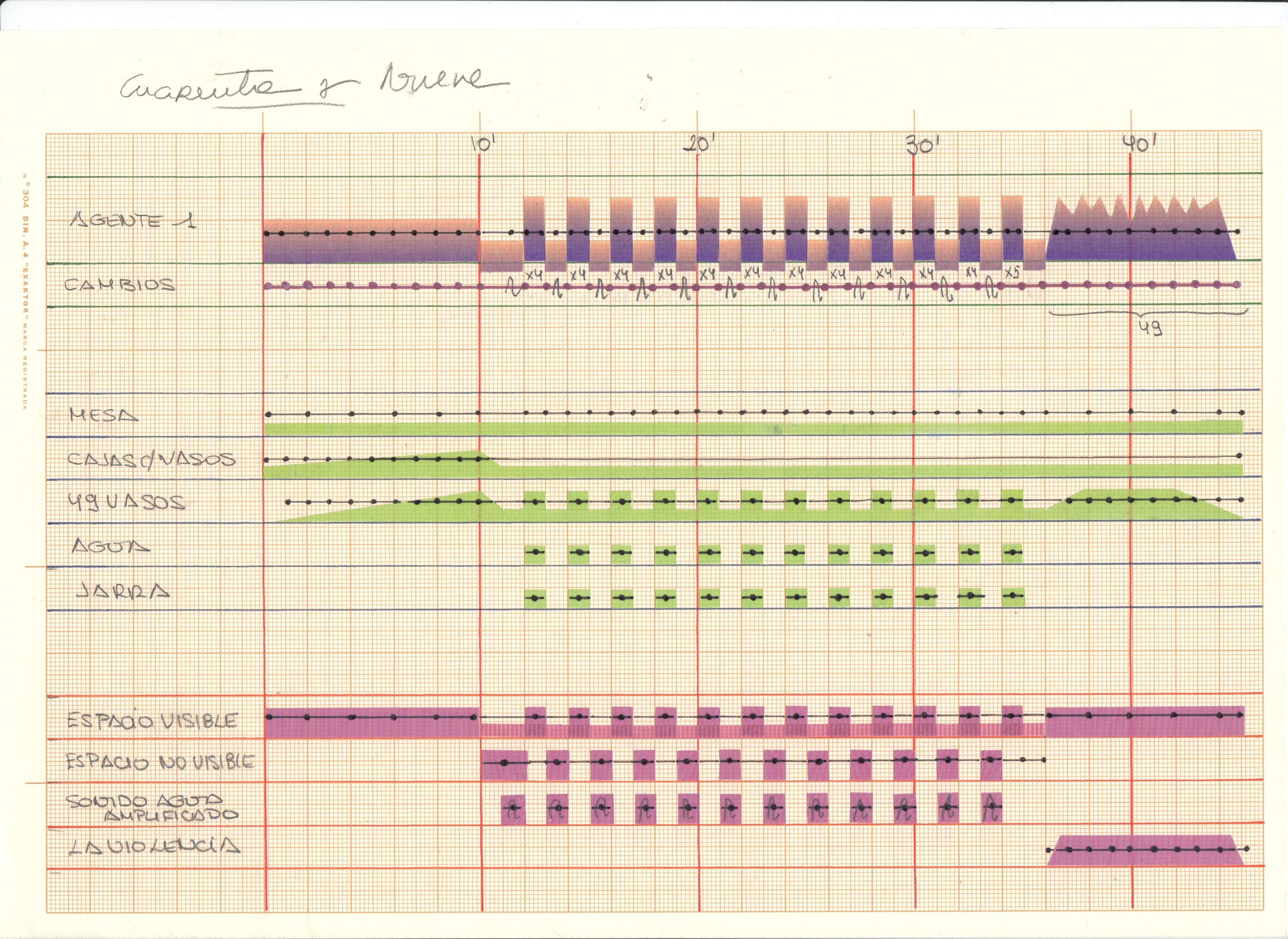 Un código en el que en una línea temporal se describen las internaciones, silencios, cambios e inflexiones de todos los elementos involucrados un una propuesta performativa, incluida la propia ejecutante o ejecutantes, y sin descripción narrativa.