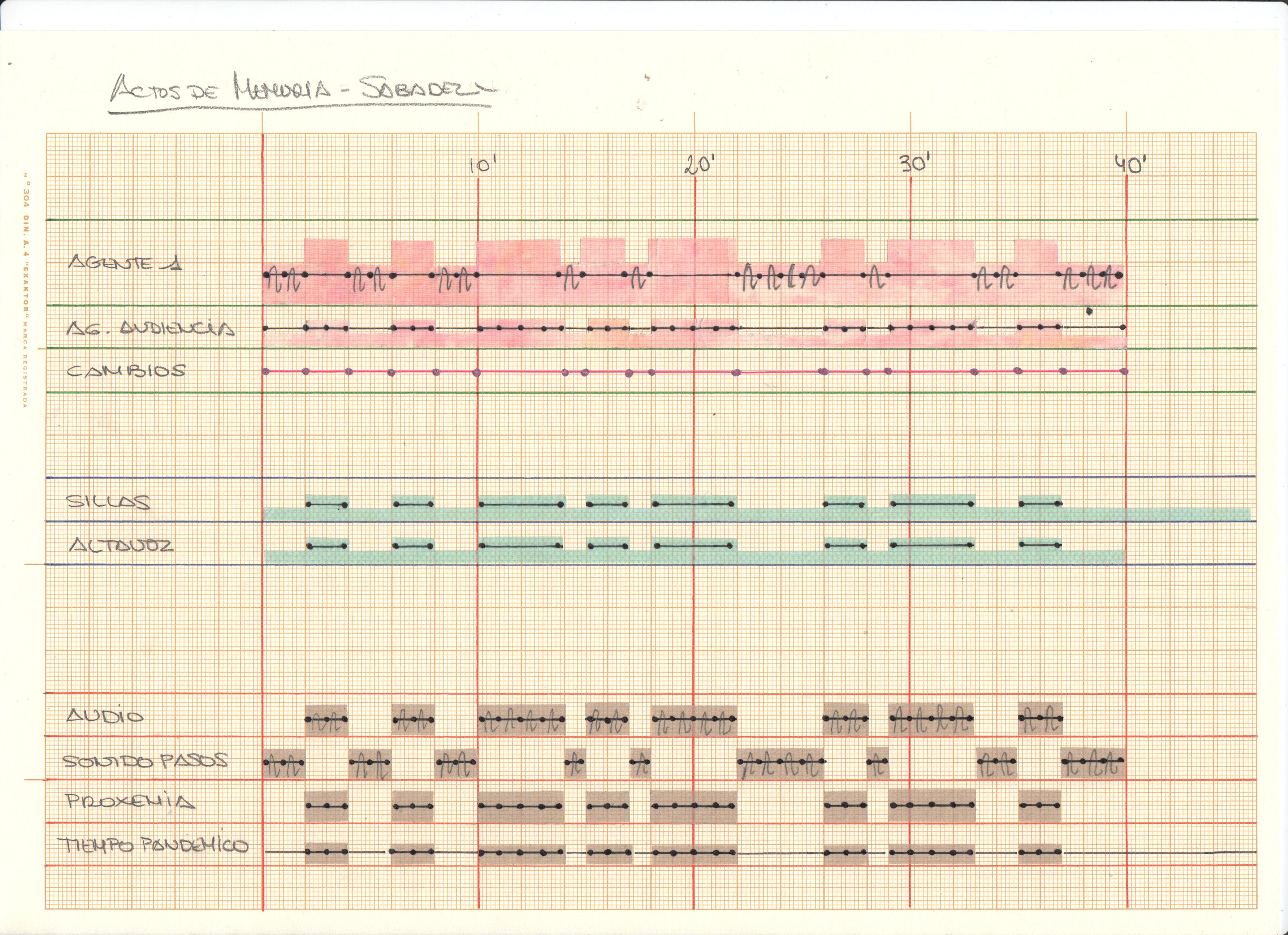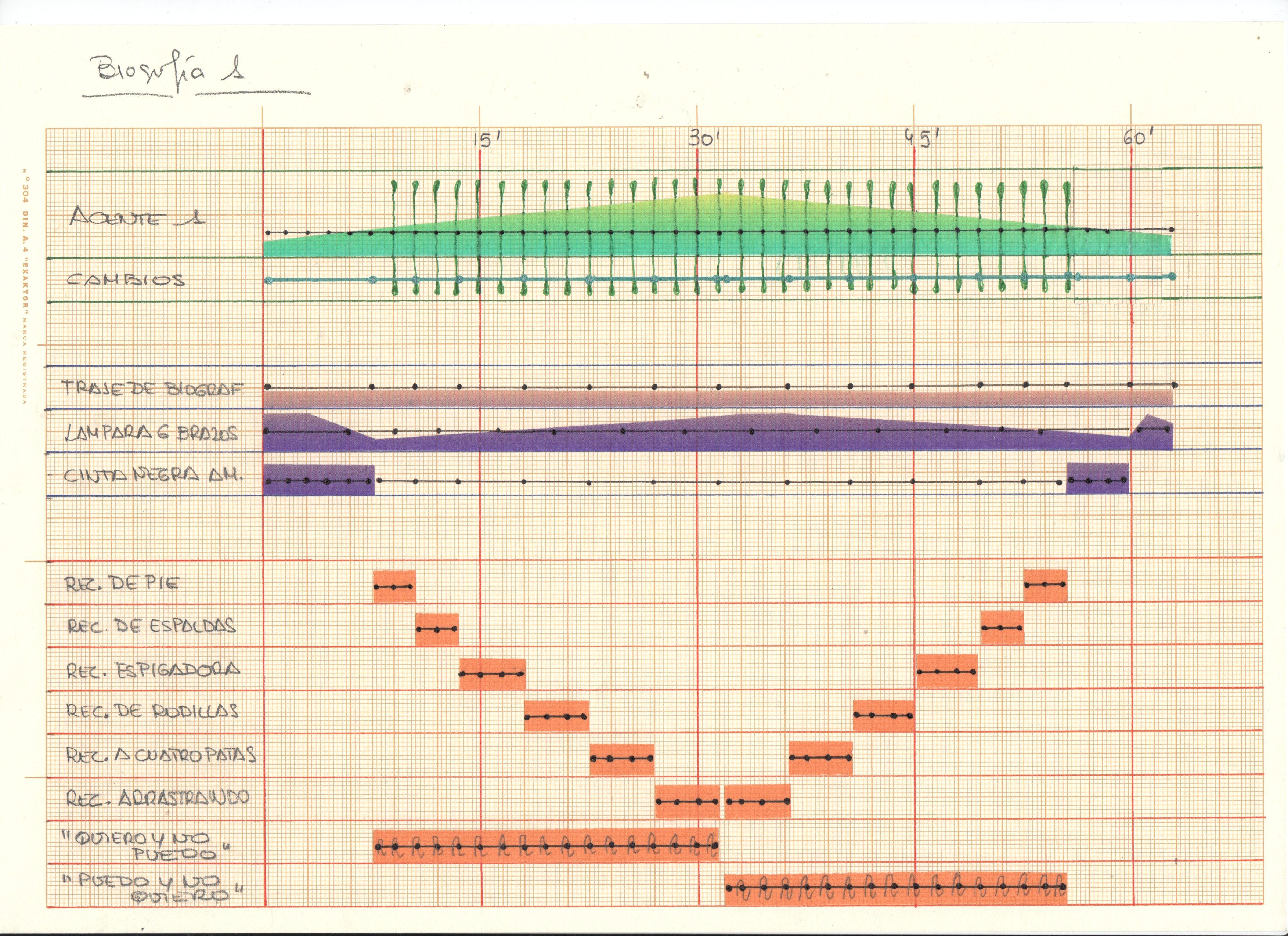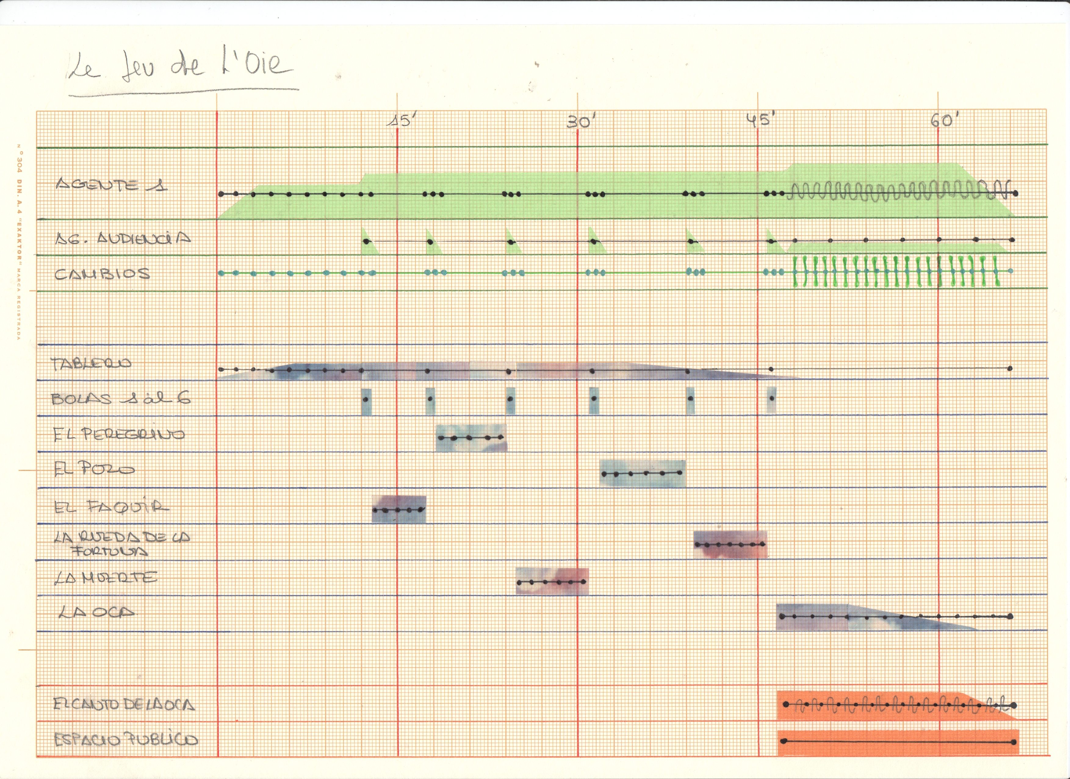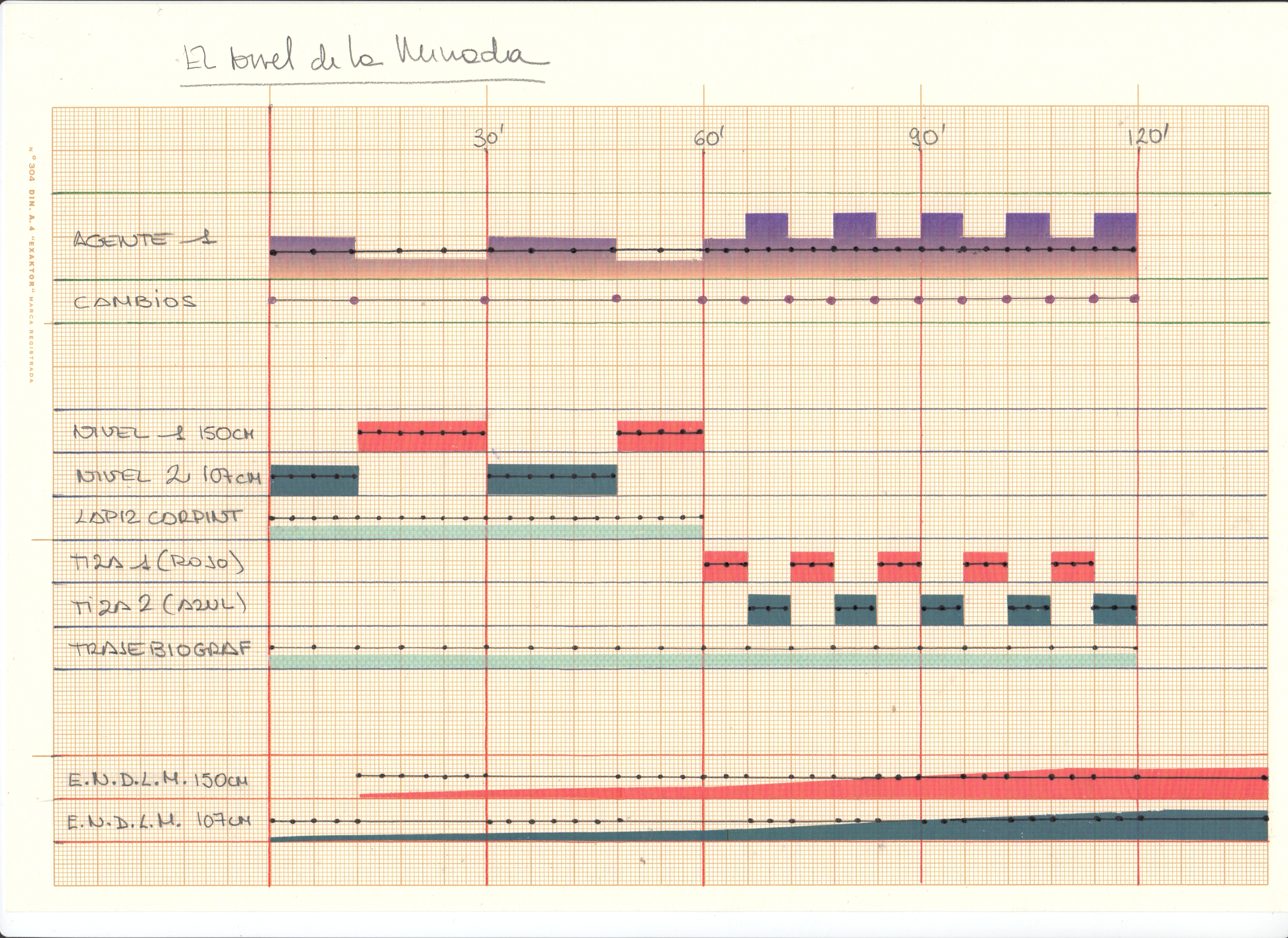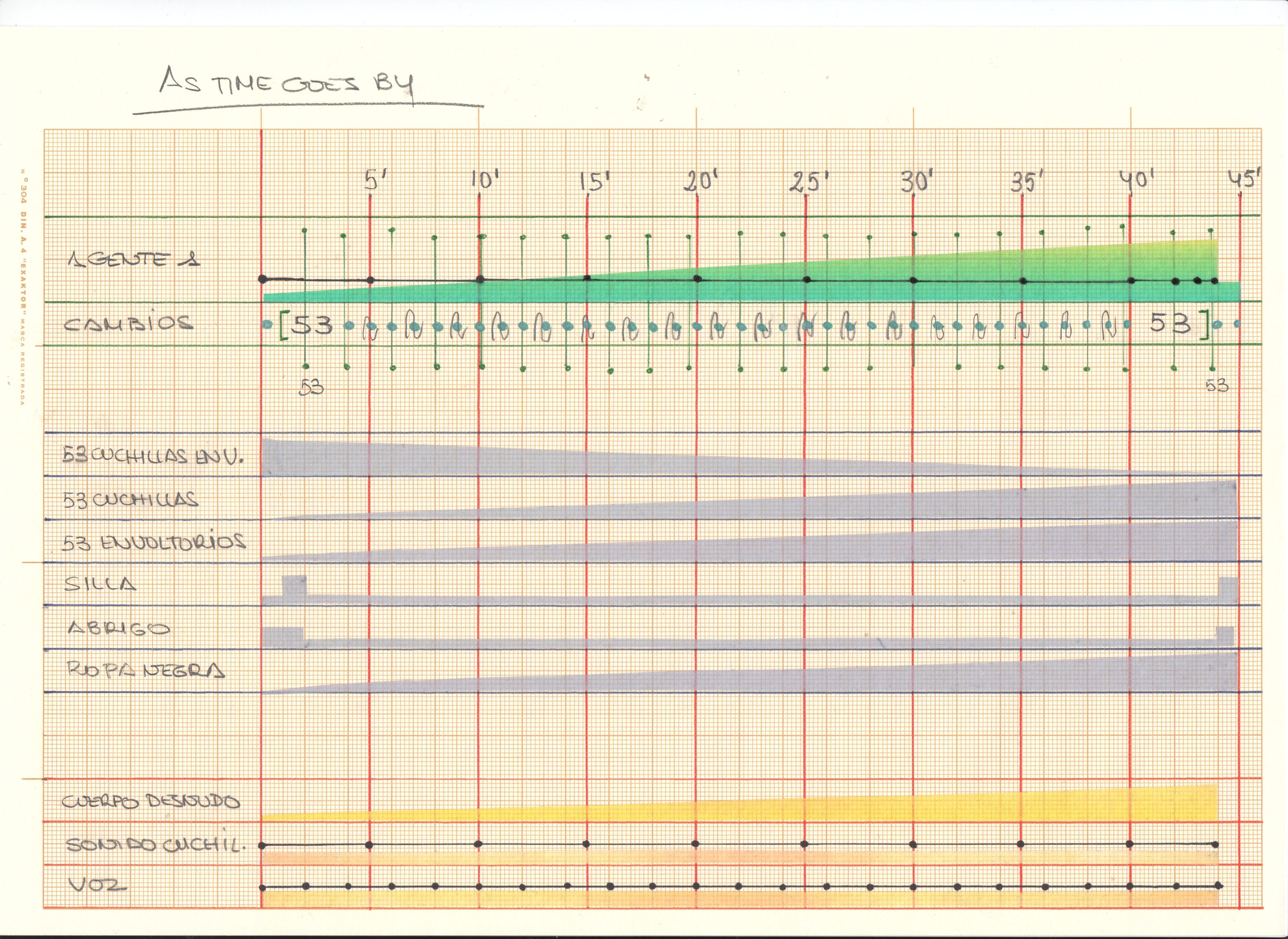 Un código en el que en una línea temporal se describen las internaciones, silencios, cambios e inflexiones de todos los elementos involucrados un una propuesta performativa, incluida la propia ejecutante o ejecutantes, y sin descripción narrativa.