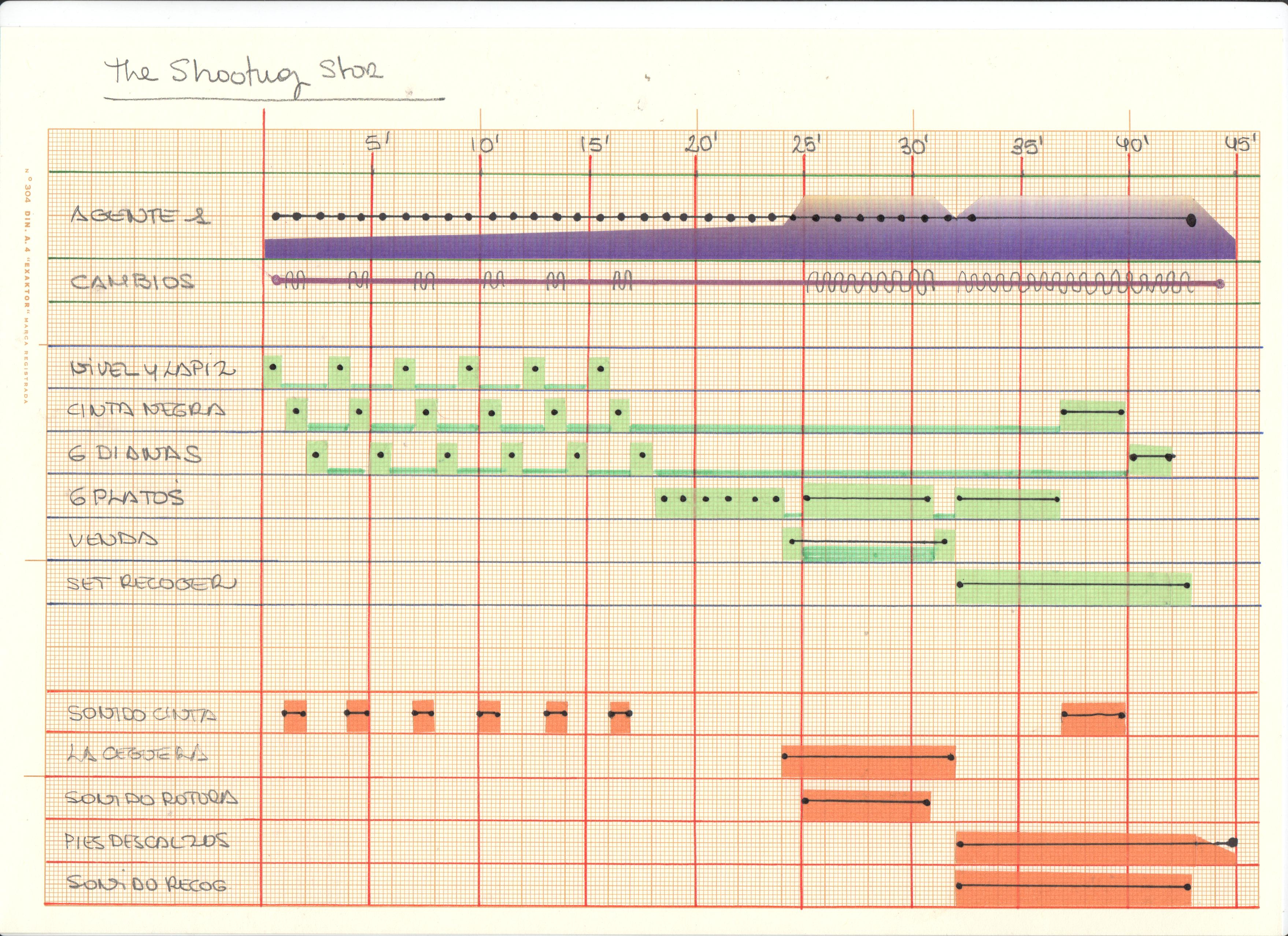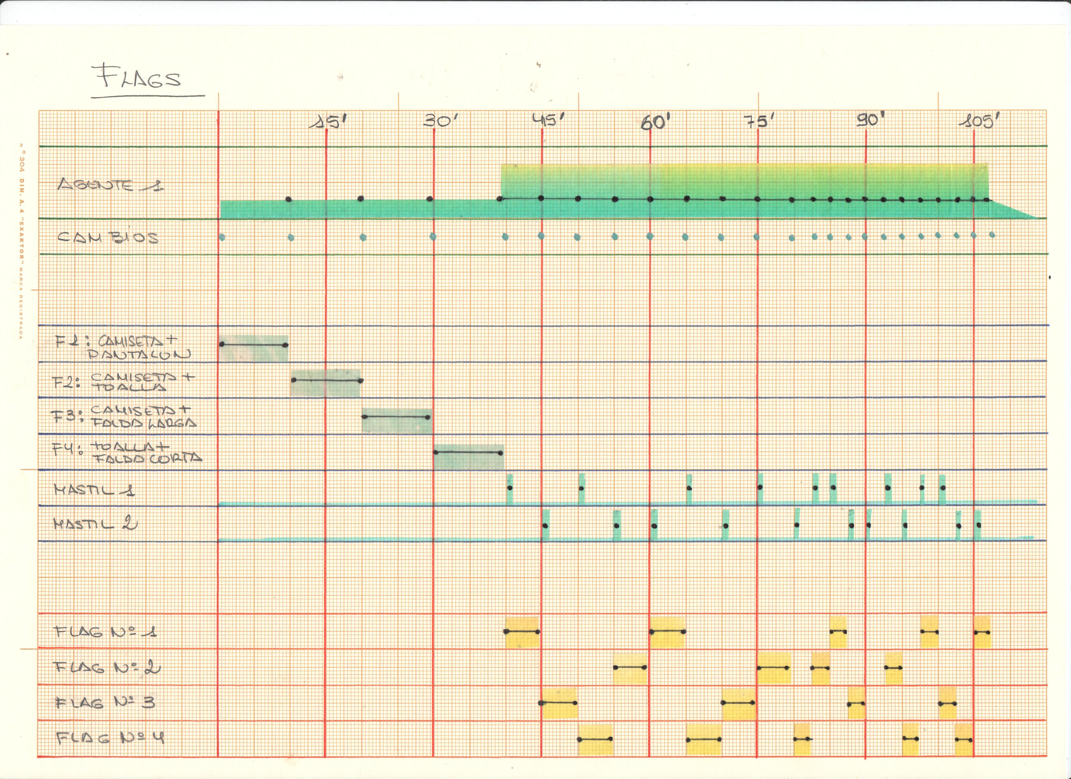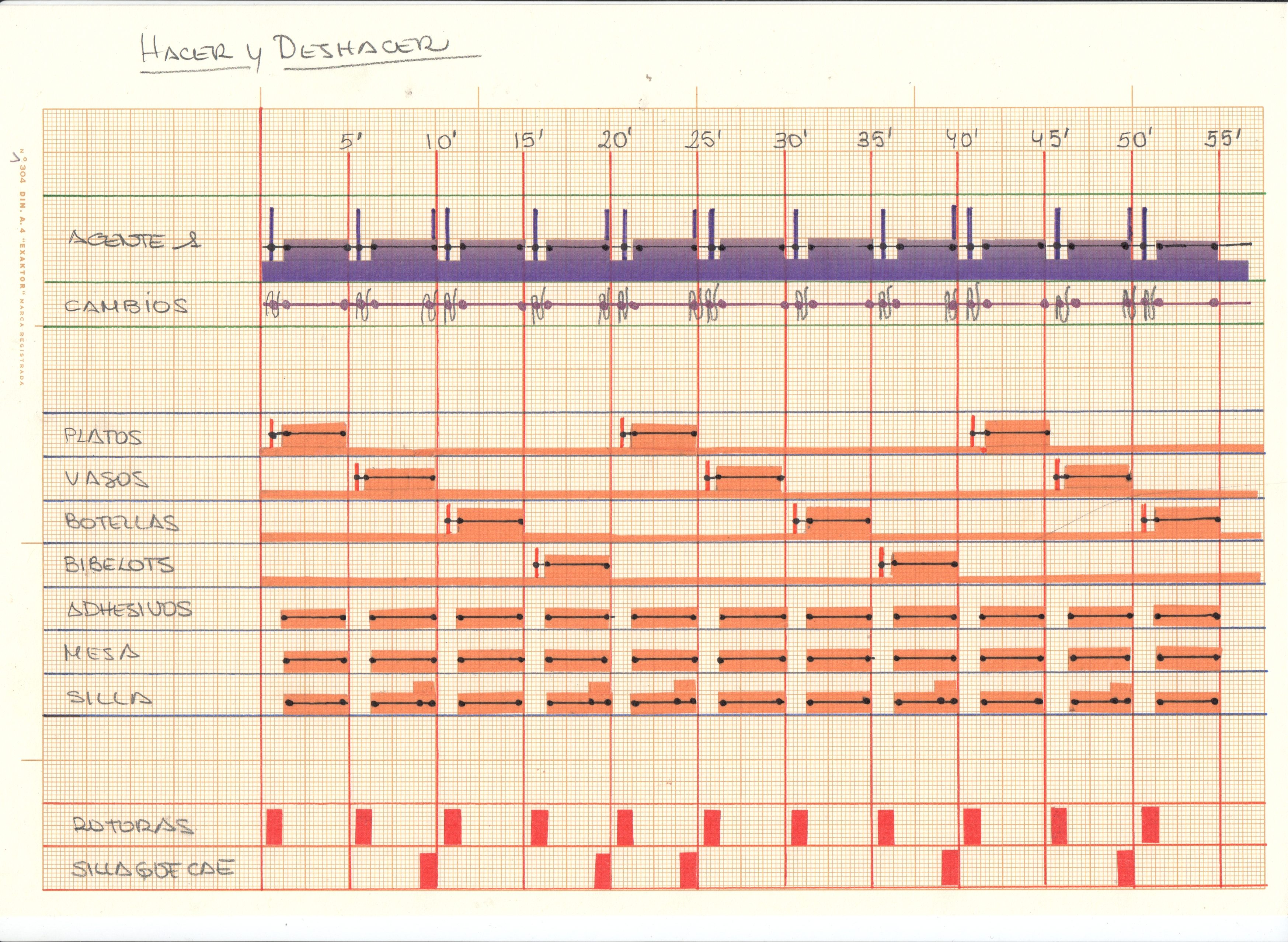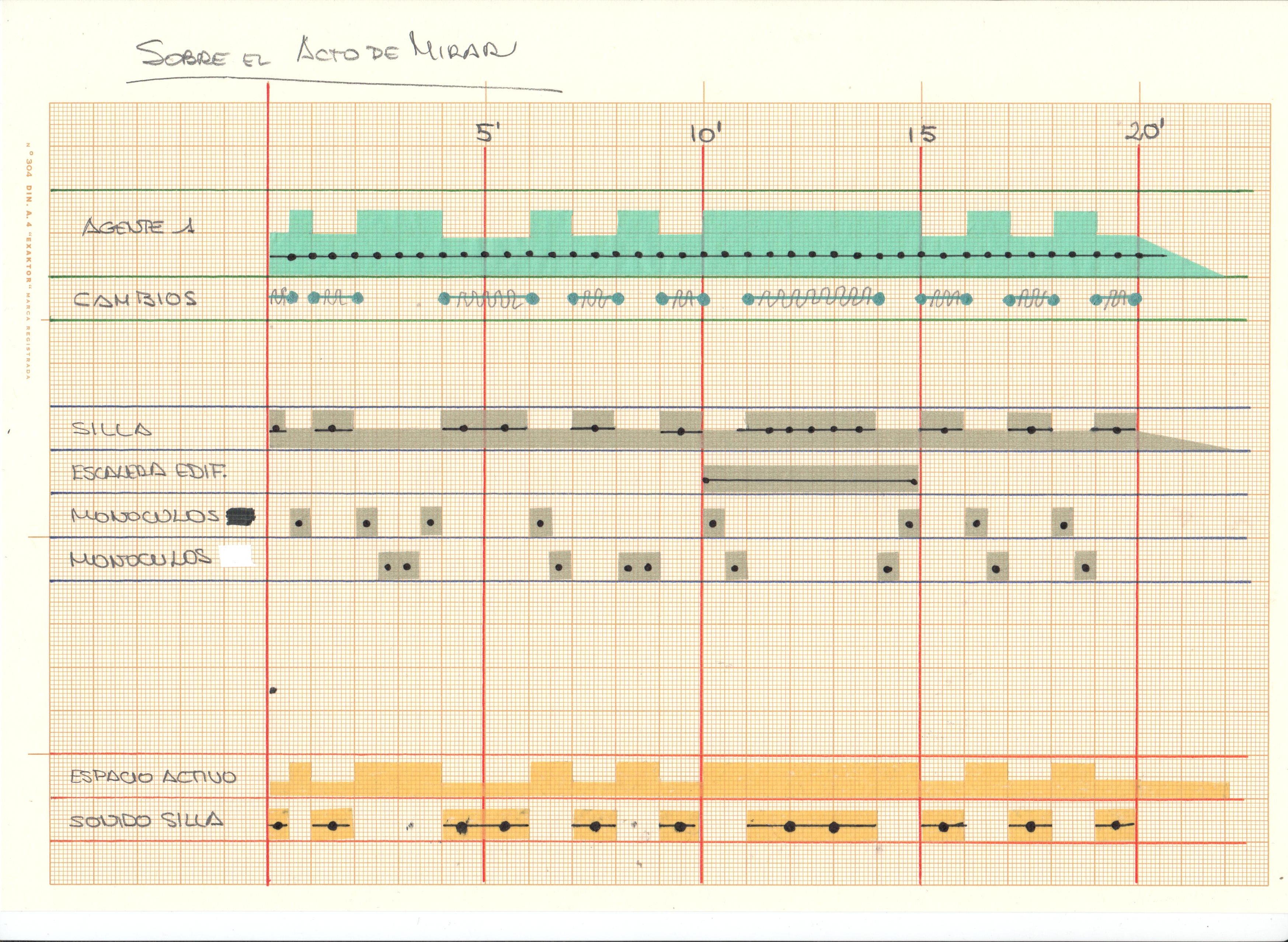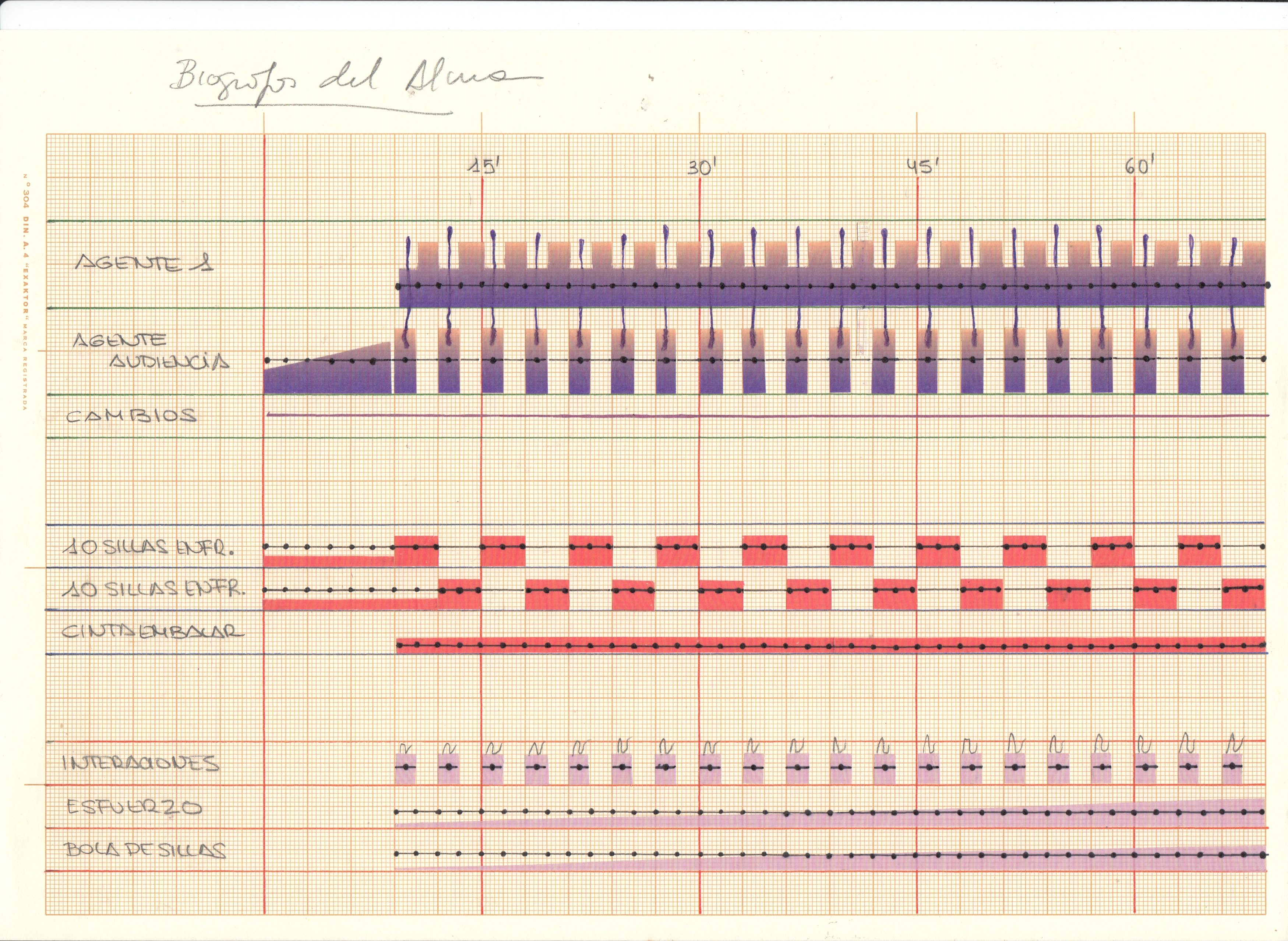 Un código en el que en una línea temporal se describen las internaciones, silencios, cambios e inflexiones de todos los elementos involucrados un una propuesta performativa, incluida la propia ejecutante o ejecutantes, y sin descripción narrativa.