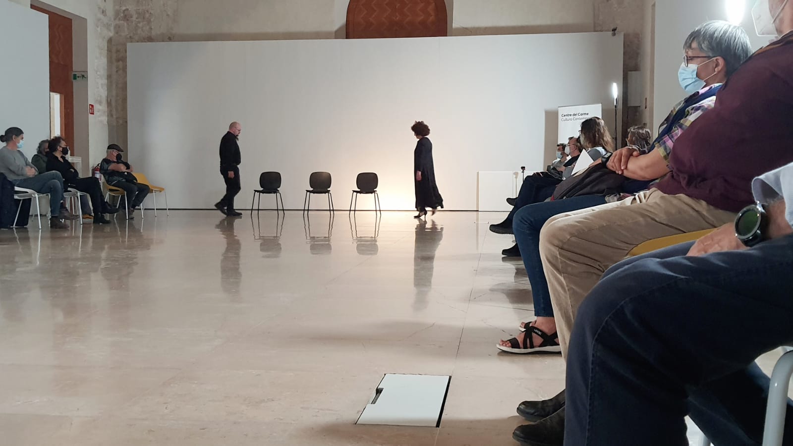 Partimos de un espacio vacío e informe en el que el público se distribuye sin ninguna referencia o referencias equívocas respecto a como se va a desarrollar la performance.