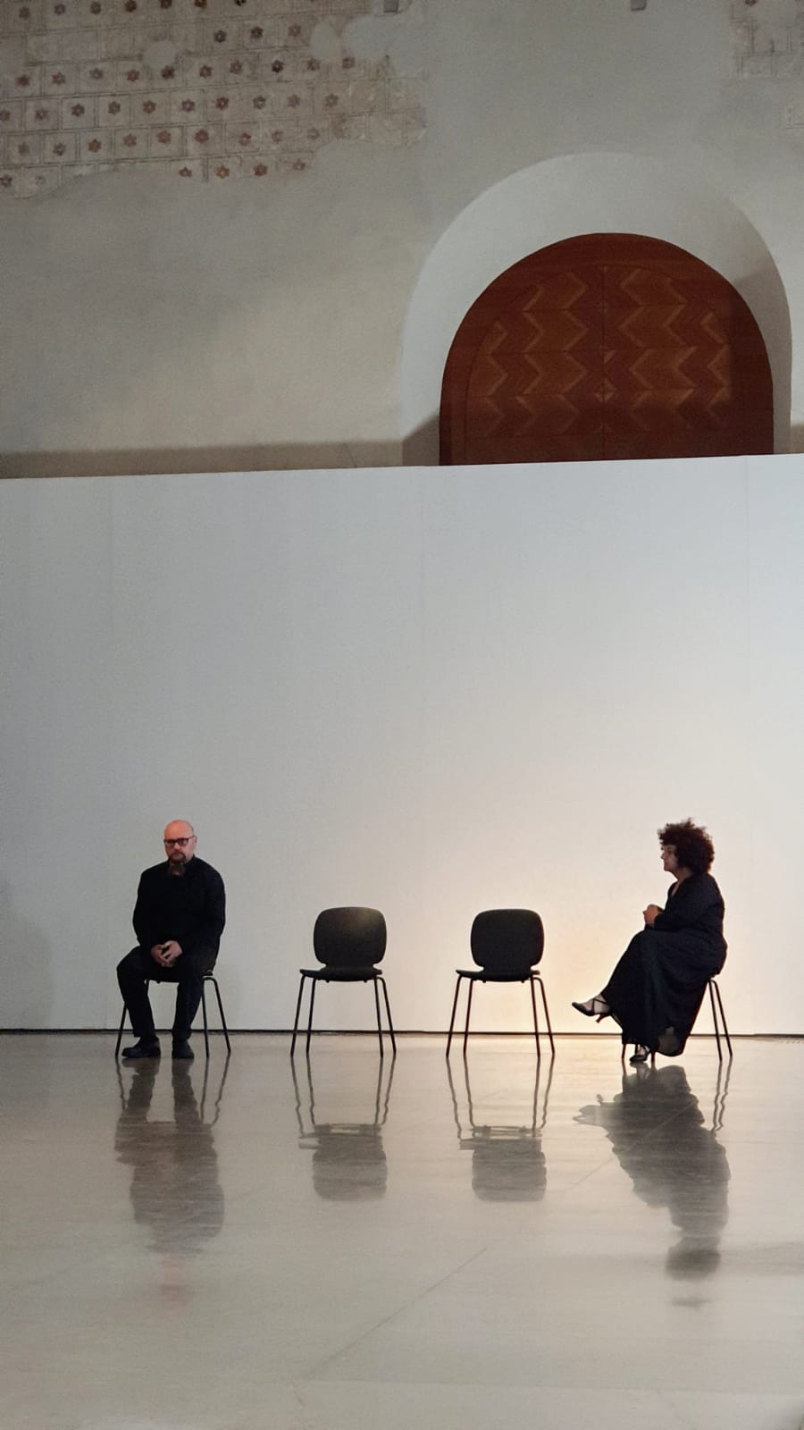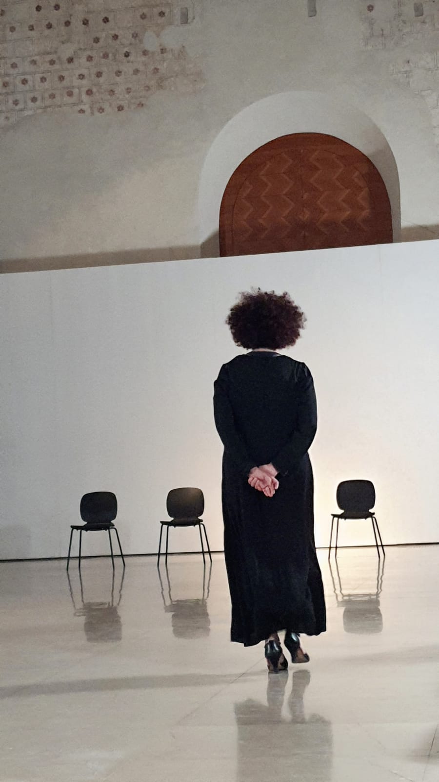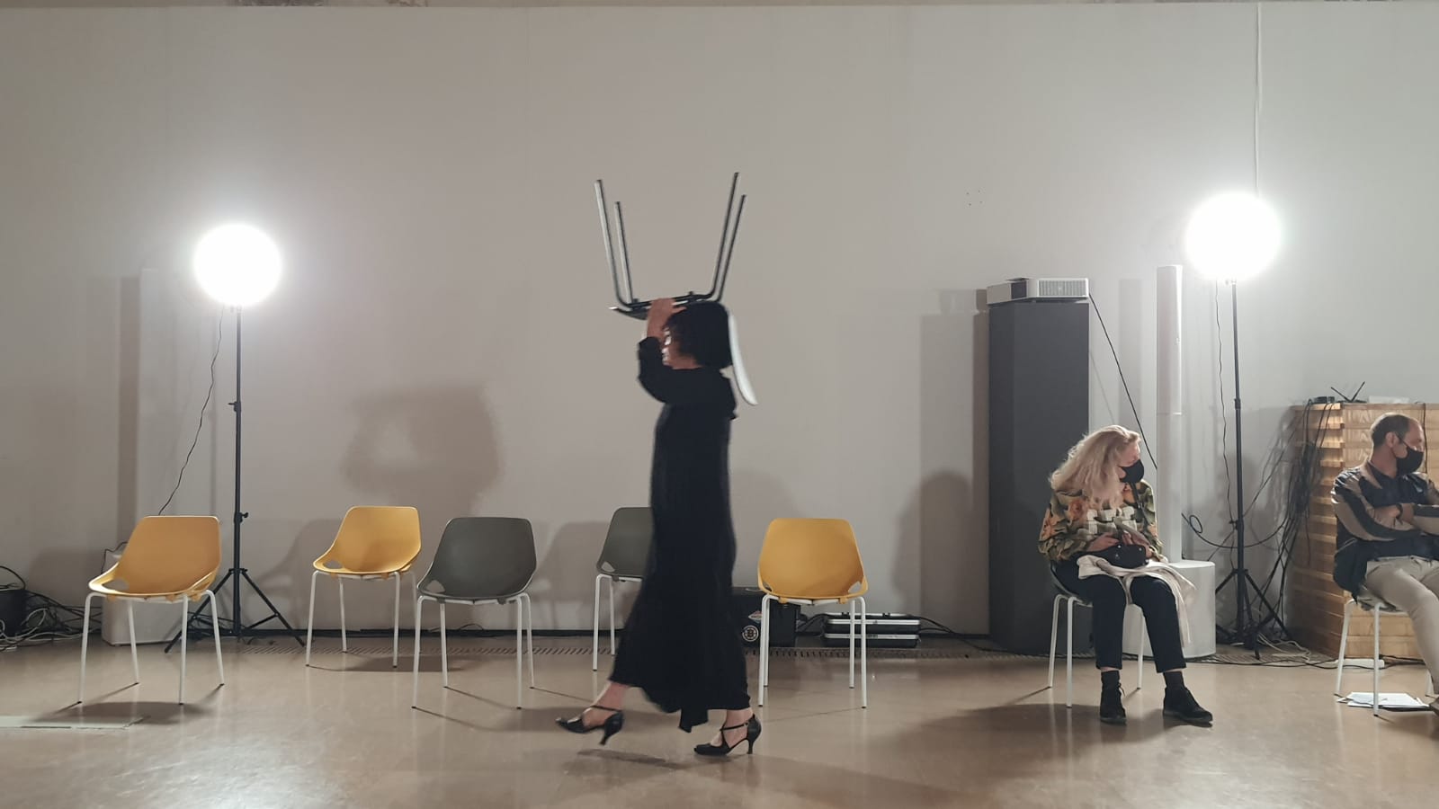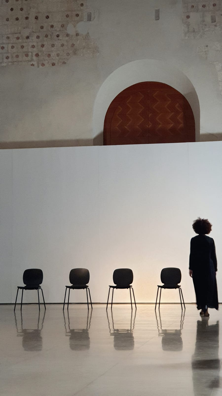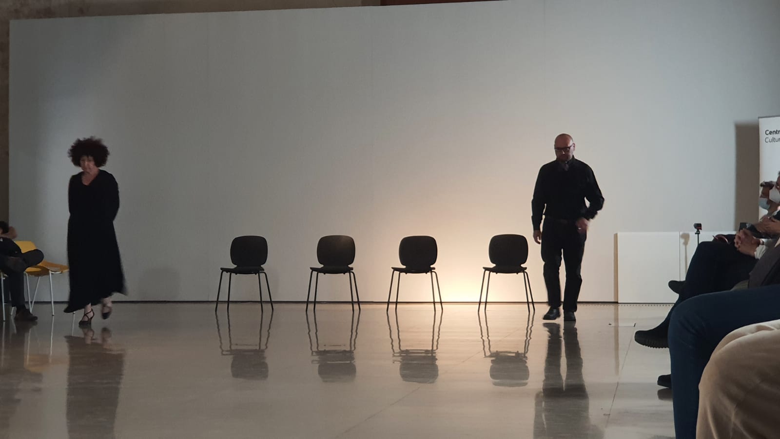 A partir de ese momento cuatro sillas que van apareciendo progresivamente se conforman como el eje fundamental alrededor del cual se articula el trabajo.