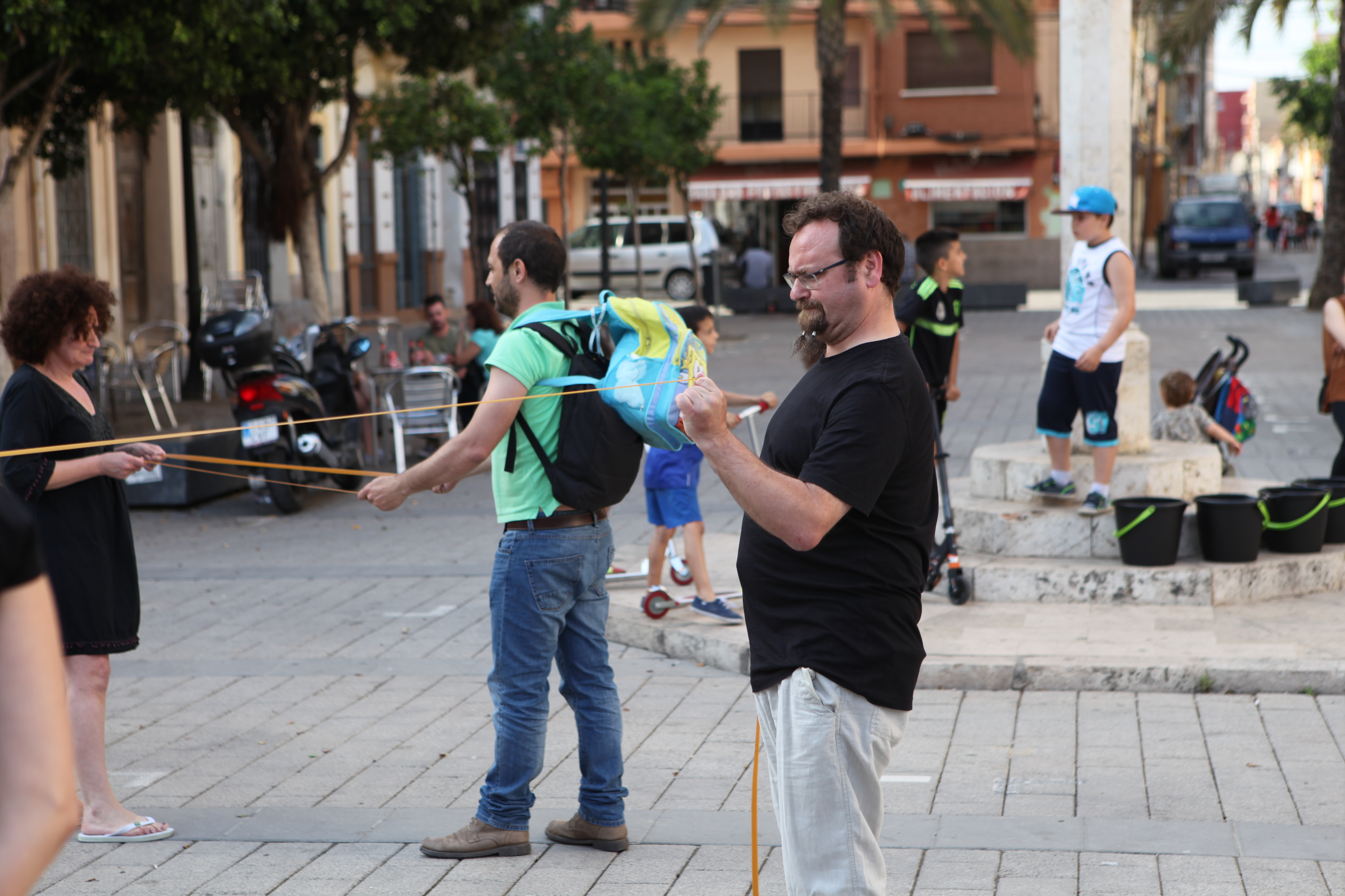 Nuestra propuesta fue una performance en la que trabajamos sobre la idea de Resistencia en relación con el barrio del Cabanyal y nosotros mismos, utilizando nuestros cuerpos como elementos visuales y como herramientas que se someten a un trabajo y a un esfuerzo evidenciando su resistencia.