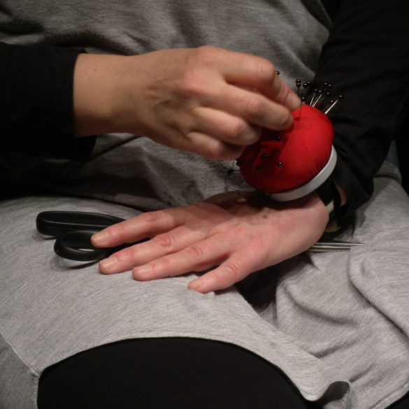 Esta obra se basa en la performance del mismo título que realicé en mi cincuenta cumpleaños. 50 alfileres de cabeza negra pinchados en un alfiletero…