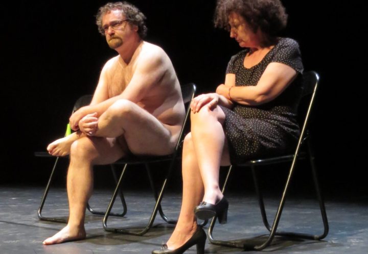 Partimos del espacio escénico vacío, al que vamos incorporando sillas hasta un total de cuatro que luego quitamos una a una.