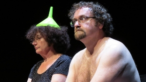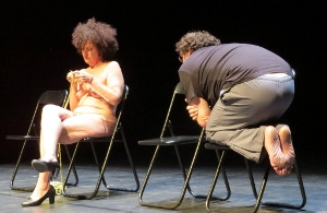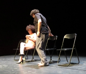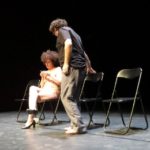 Según incorporamos sillas vamos haciendo combinaciones de sillas y nosotros en una especie de danza-mudanza utilizando varios objetos muy simples y nuestros propios cuerpos.