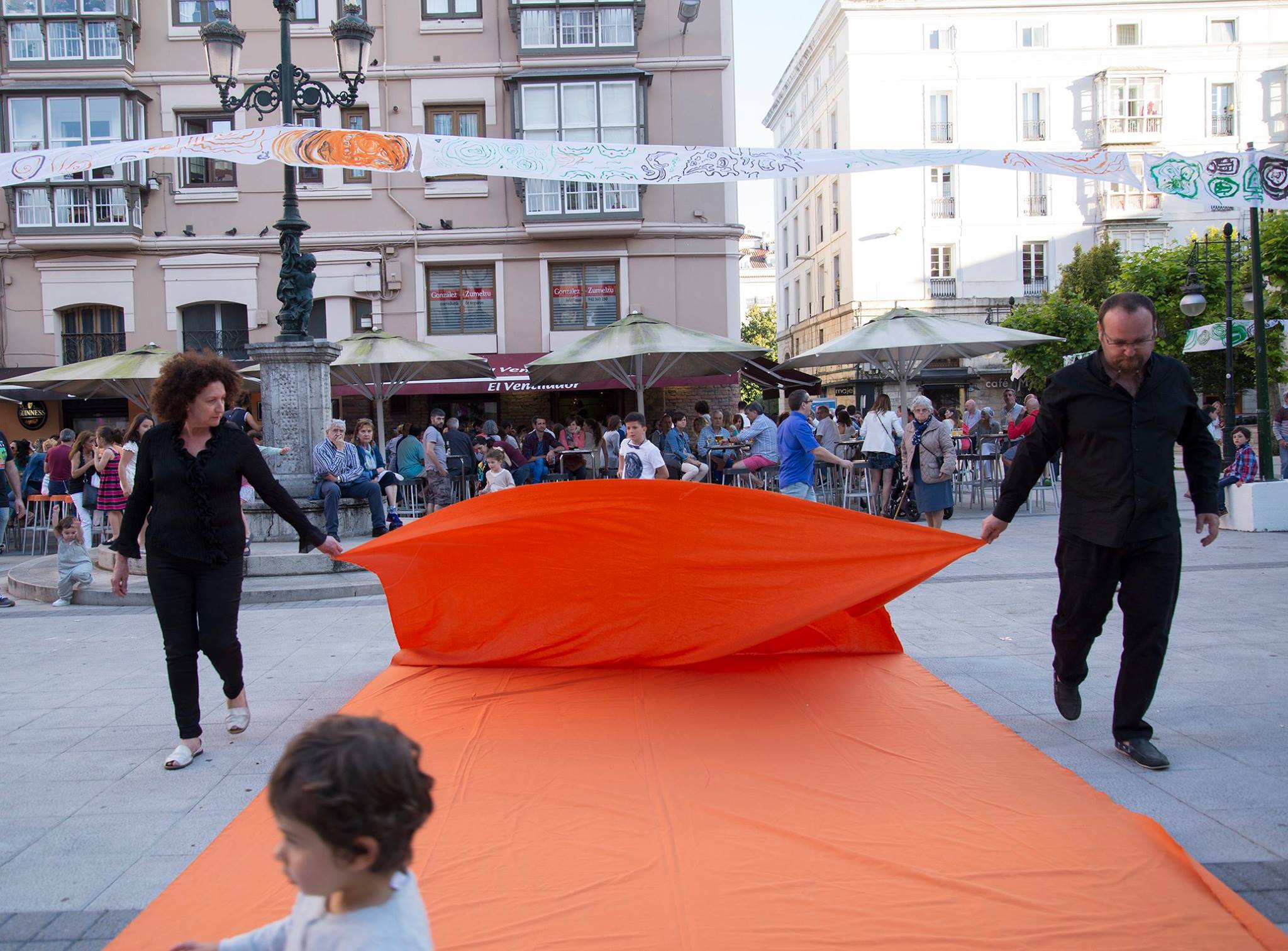 Santander, plaza de Cañadío, ocho de la tarde. La plaza está repleta; los niños juegan a nuestro alrededor mientras los padres toman una cerveza en los bares que rodean la plaza.