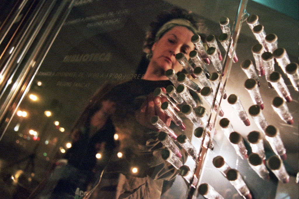 De los bolsillos de mi ropa voy sacando uno a uno tantas barras de labios como años tenga en el momento de hacer la performance