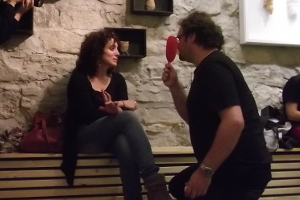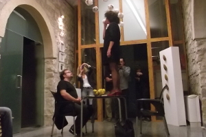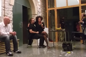 La performance se articula en torno a una mesa y dos sillas y una cesta de limones. Cada limón nos remite a una fragmento de nuestra historia personal que compartimos con el público.