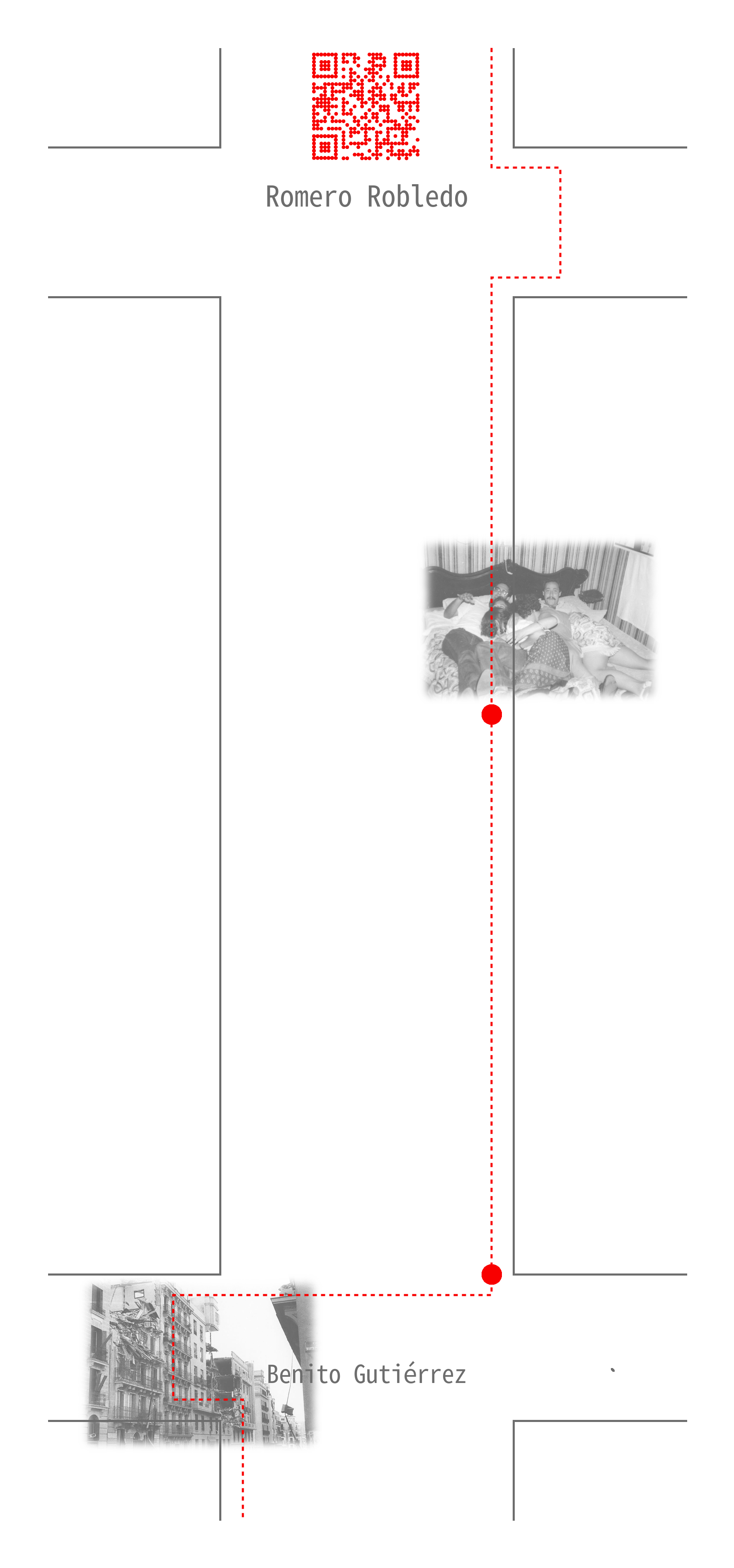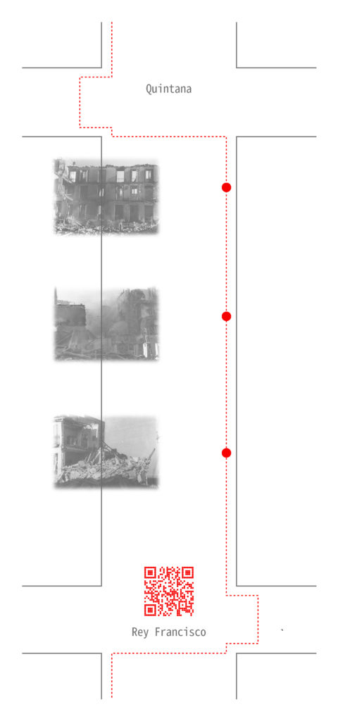 Estos 11 videos se han alojado en un canal privado de YouTube y por cada uno de ellos se ha generado un código QR que impreso en pegatinas, junto al título del proyecto, se ha distribuido por las once manzanas en las que se divide la calle Martín de los Heros. Cada manzana tiene su propio vídeo ahondando en su historia particular, no siempre fácil de descubrir.