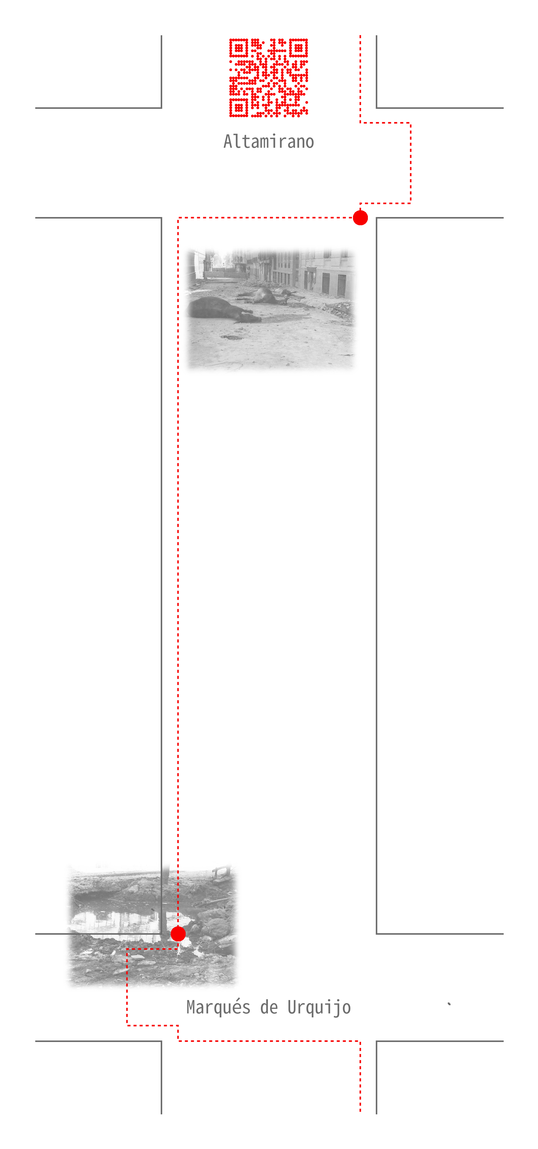 Códigos QR impresos y distribuidos a lo largo de los once tramos de la calle Martín de los Heros