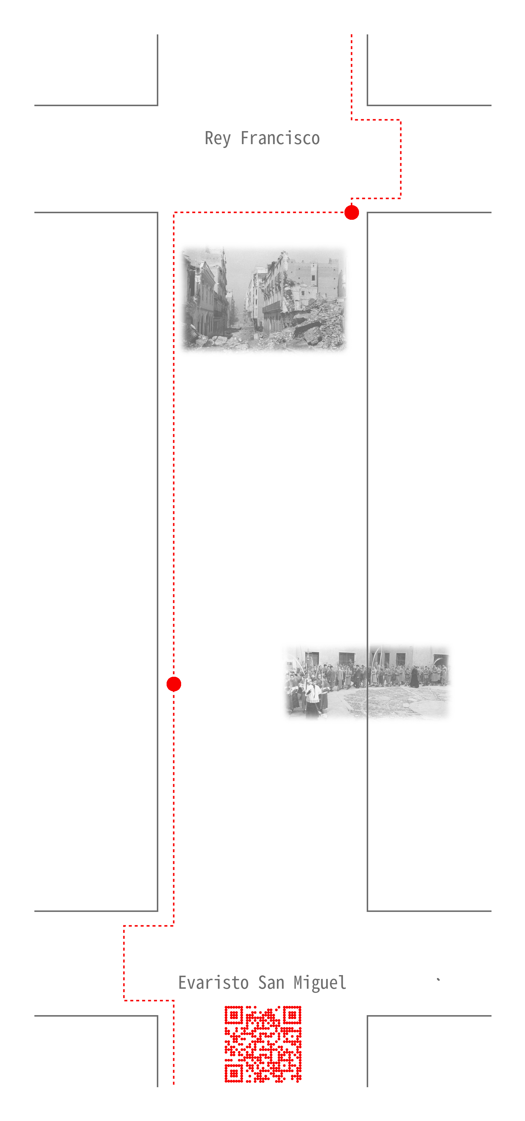 Los videos se han creado en base a imágenes de mis recorridos actuales por la calle como la ACCIÓN de caminar-recordar, fotos familiares, imágenes de la Biblioteca Virtual de la Prensa Histórica, de la página web Memoria de Madrid, del Archivo Rojo, etc.…